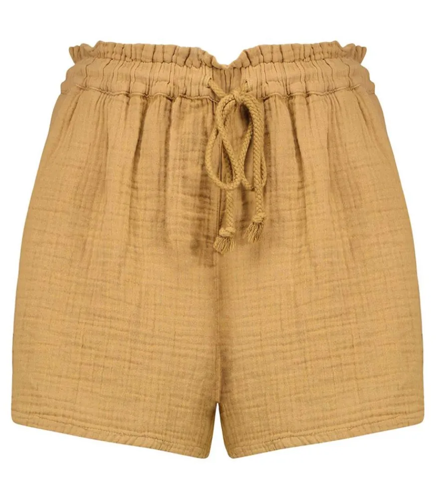 Short Starla En Gaze De Coton Coloris Khaki De La Marque Xirena, Ce Modèle Dévoile Des Poches Latérales Et Un Lien De Serrage À La Taille Avec Un Cordon De La Même Couleur. Ce Modèle Proposé Dans Un Coloris Kaki S’Associe À Une Chemise Ample Et À Une Paire De Sabots Pour Un Look Moderne Et Estival.