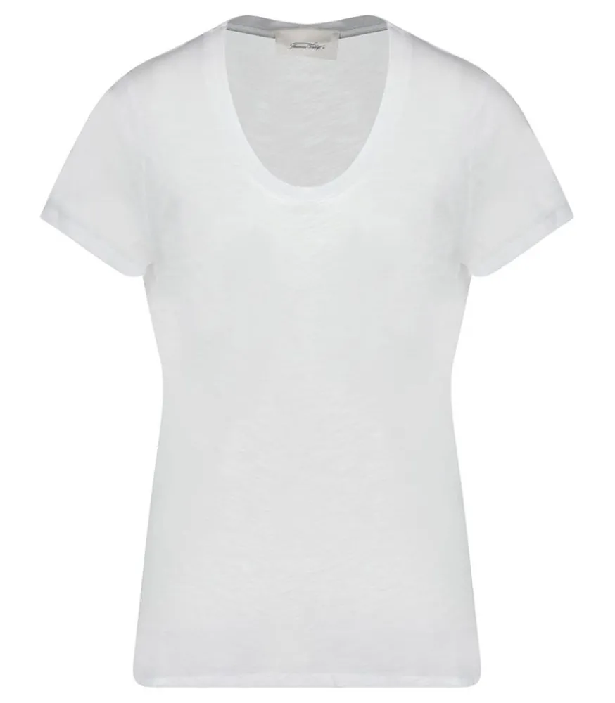 Tee-Shirt Basic American Vintage, Modèle Jacksonville À Manches Courtes, Coupe Ample Et Encolure En U. On Le Porte Simplement Avec Un Jean Et Des Boots Pour Une Allure Casual.