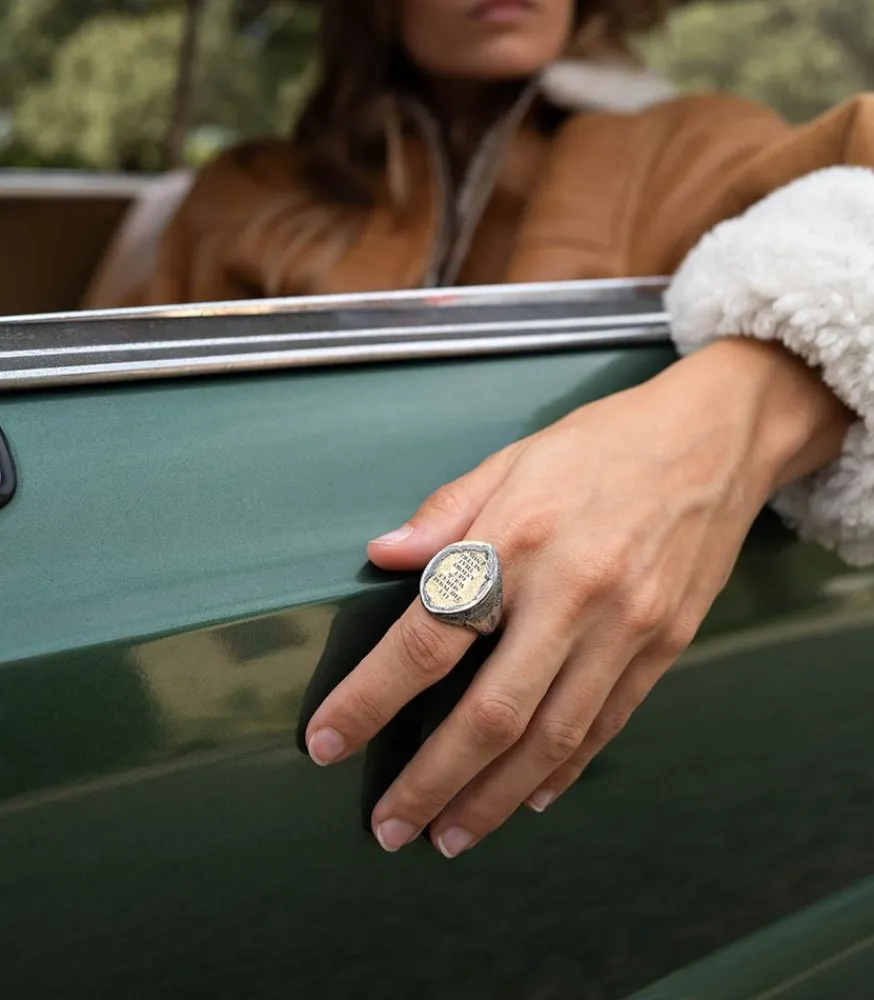 Bague Let The Poem Seduce You « Yg » De La Marque Tó Garal. Une Bague Qui Raconte Une Histoire, Laissez-Vous Séduire Par Son Poème. Véritable Accessoire De Mode, Elle Apportera Une Touche D’Originalité Et Un Côté Rock À Votre Tenue.