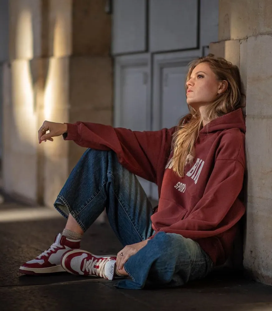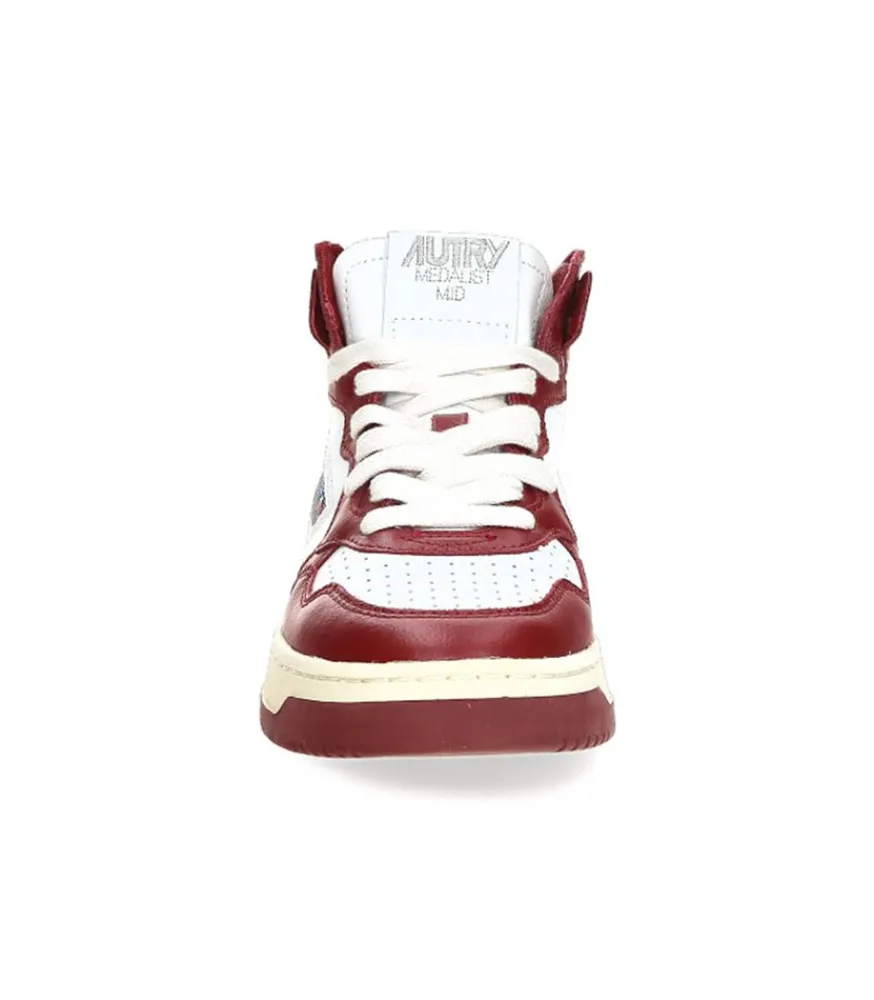 Baskets Medalist Mid Blanc Et Syrah De La Marque Autry. Ce Modèle Apporte À Votre Look Un Côté À La Fois Rétro Et Moderne. Coloris Rouge Intense Idéal Pour L’Automne-Hiver.