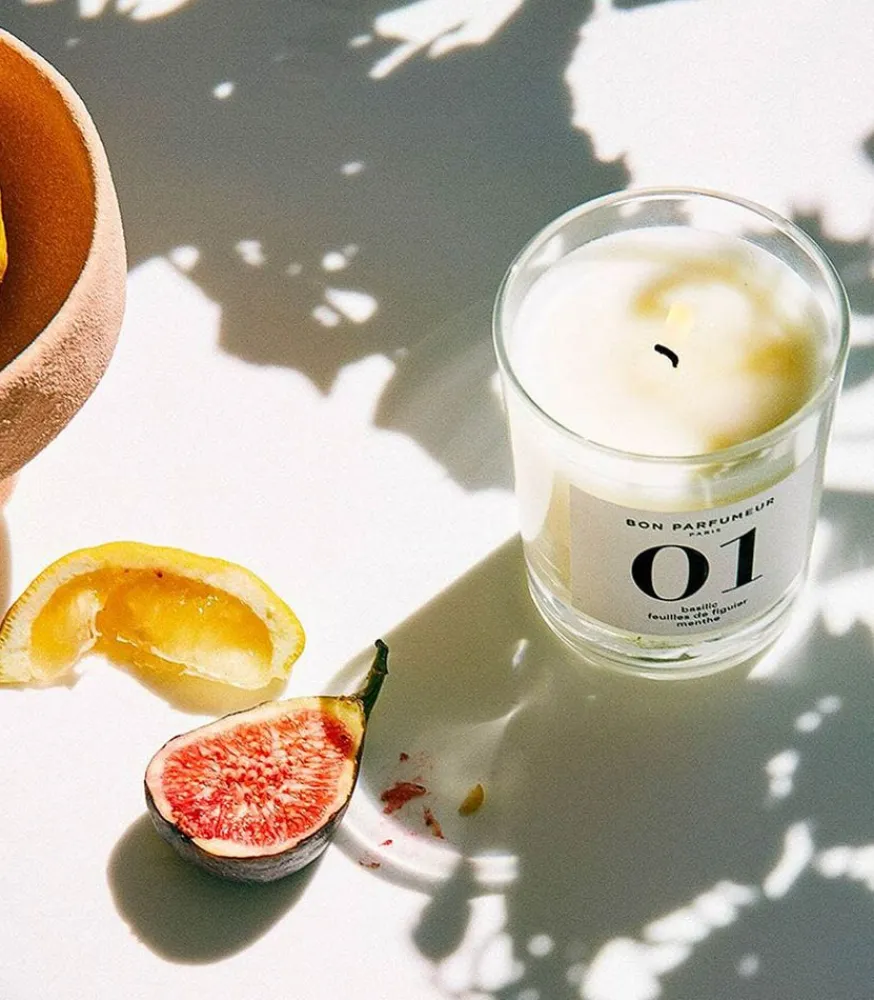 Bougie Parfumée 01 Basilic, Feuilles De Figuier Et Menthe De La Maison Bon Parfumeur. Un Parfum D’Intérieur Aux Douces Senteurs Conçues Autour Des Feuilles De Basilic, De Menthe Et De Figuier, Qui Dégagent Une Fraîcheur Verte Et Aromatique. On Retrouve Une Note De Tête Dictée Par La Douceur Et L’Amertume De L’Orange Du Brésil, Un Cœur Dynamisé Par De L’Eucalyptus Bleu Et Un Fond Rond Grâce Aux Extraits De Vanille.