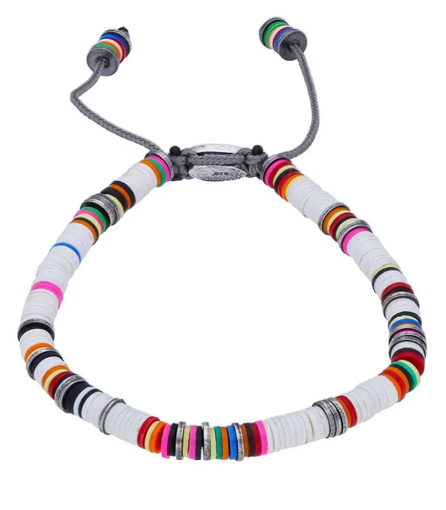 Décliné En 10 Coloris Différents, Le Bracelet Rainbow En Perles Africaines Et Argent M.Cohen Est L’Un Des Bijoux Incontournables De L’Été. Il Est Composé D’Une Succession De Perles Africaines Multicolores Très Fines Et Est Ponctué De Disques En Argent Oxydés. Chaque Bracelet Est Ajustable Grâce À Son Système De Fermeture À Doubles Cordons.
