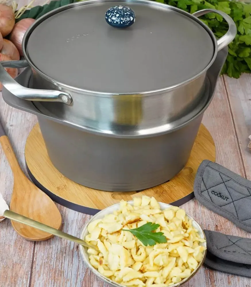 Dessous De Plat En Bambou Signé Cookut, Au Design Sobre Et Élégant. Avec Son Coloris Bambou Et Graphite, Il S’Accorde Parfaitement Avec L’Incroyable Cocotte. Convient Aussi Bien Aux Cocottes 24 Que 28 Cm.