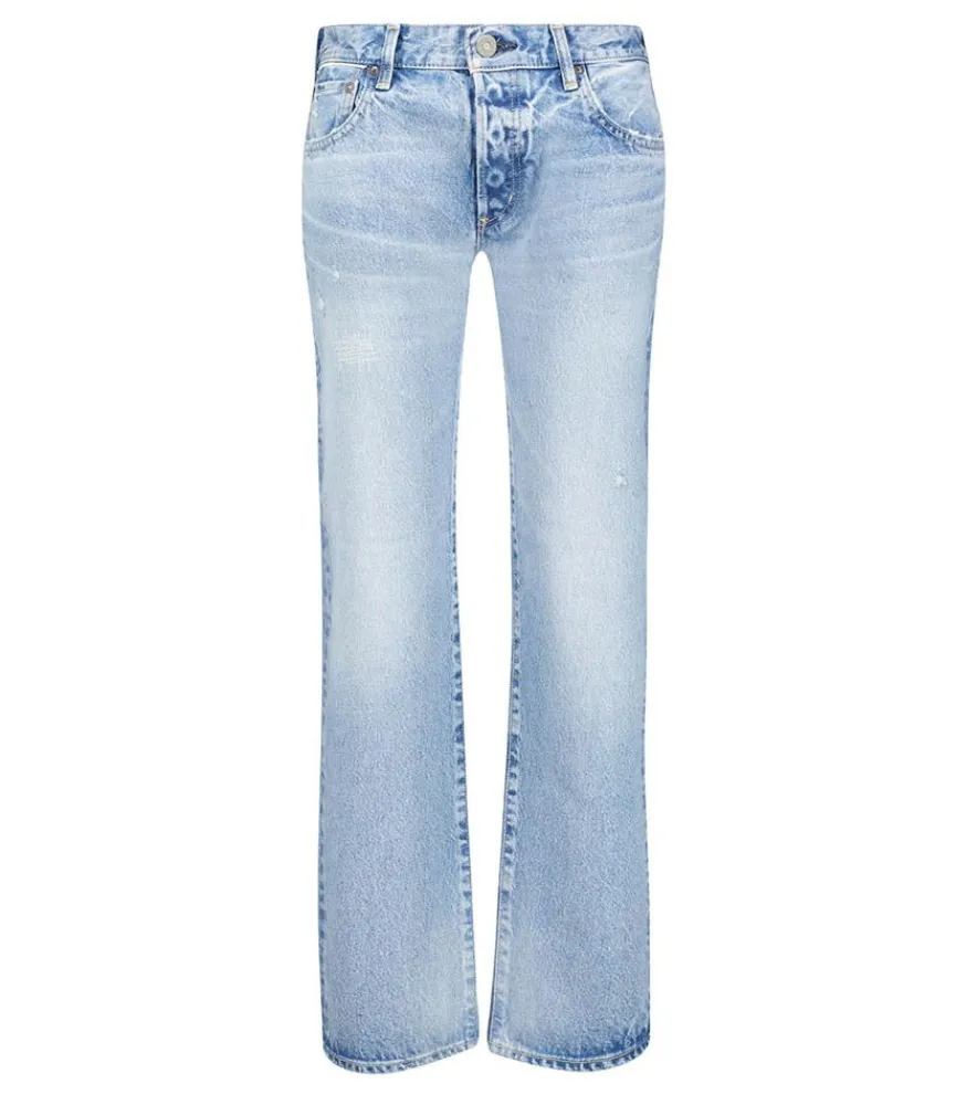Jean Bleu Taille Basse À La Coupe Droite. Modèle A L’Effet Usé Pour Apporter Une Touche Vintage À Votre Look. Une Coupe Très Tendance Qui Allongera Votre Silhouette.