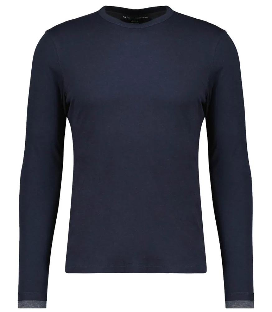 Tee-Shirt Homme Col Rond Manches Longues Coton Marine. Véritable Incontournable Du Dressing Homme. Se Porte Facilement À Toutes Les Saisons, Seul Ou Accompagné D’Un Pull.