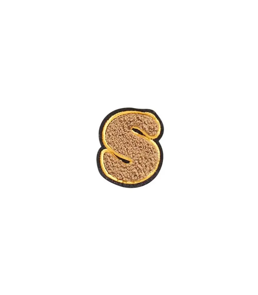 La Gamme De Patchs The Letter Proposée Par Marc Jacobs Permet De Créer Des Messages Et Textes Uniques. Elle Vient Personnaliser Les Vêtements Et Objets En Tissu. La Lettre S Fait Partie De La Collection En Proposant Une Forme Ramassée Tout En Rondeur. Sa Teinte Est Sobre Avec Une Prédominance De Marron Associée En Bordure De Jaune Et De Noir.