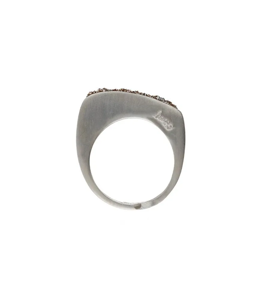 Bague Galet En Email Pail Or De La Marque Lsonge. Une Bague De Forme Plate En Argent 925, Dont La Tranche Avant Est Ornée De Petits Zirconiums Dorés.