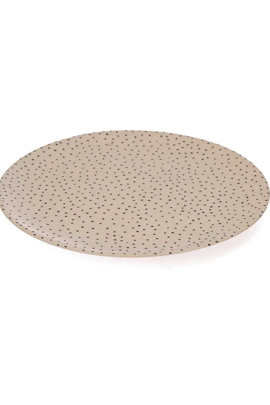 Grande Assiette En Céramique Beige Recouverte De Petits Pois Noirs.