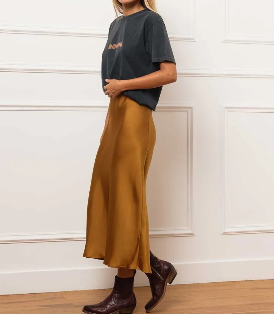 La Jupe Parfaite : Longue, Satinée, Au Toucher Soyeux Qui Fait Qu’On En Oublierai Presque Que L’On Porte Un Vêtement. En Plus D’Incarner Le Confort Absolu, Cette Jupe Bar Anine Bing Met En Valeur La Silhouette Et Apporte La Touche Chic.