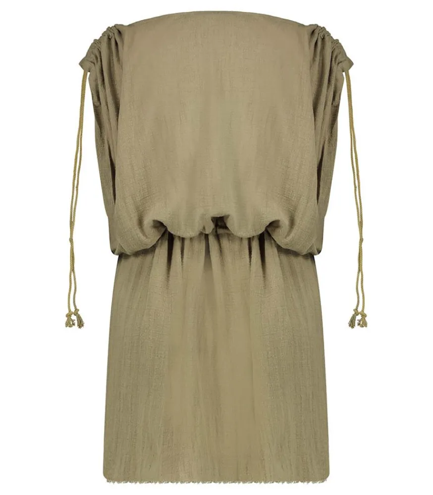 Robe Courte Alexandrie Khaki De La Marque Maison Saint Julien, Une Robe Kaftan D’Été Légère Et Aérienne, Conçue En Mousseline De Coton Et Qui Offre Une Allure Bohème.