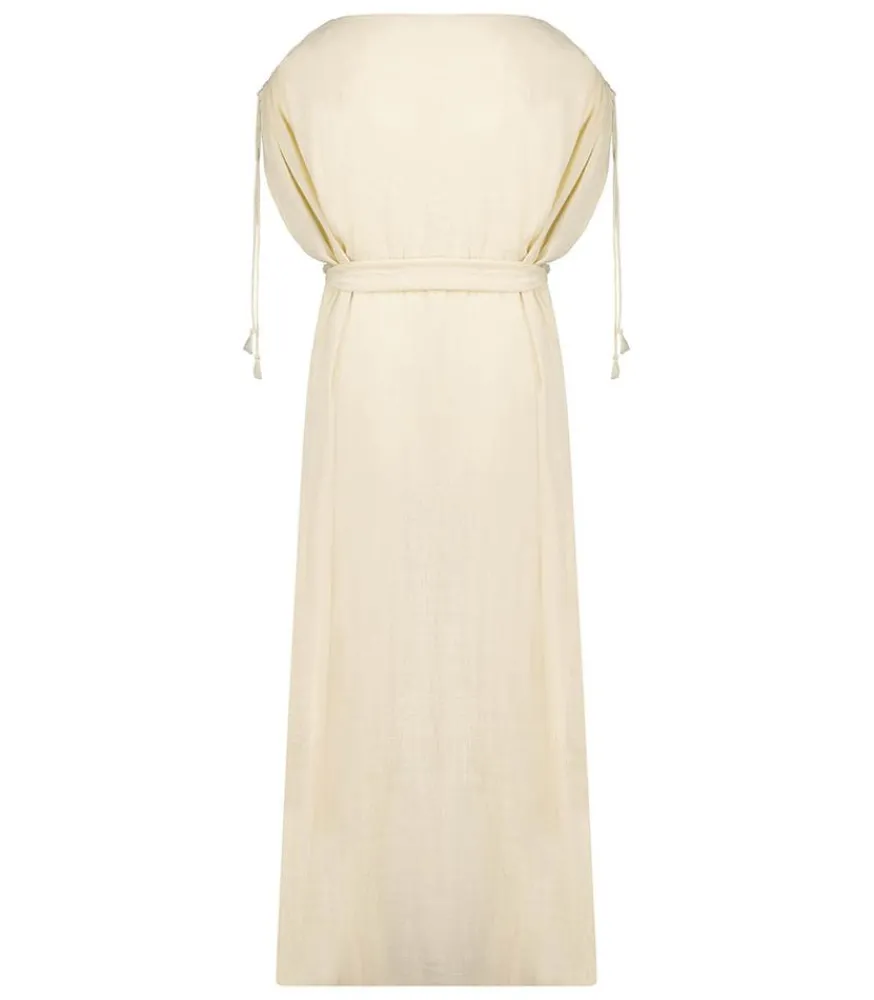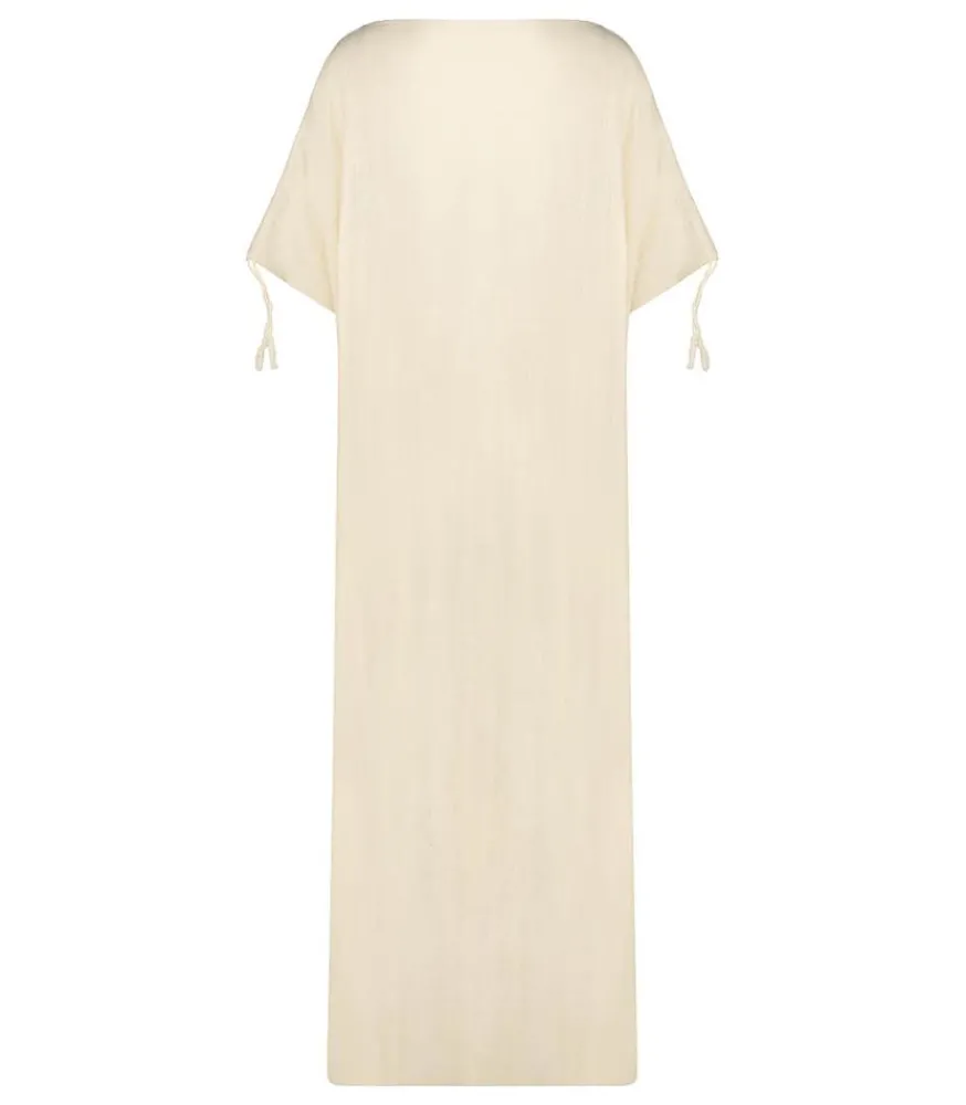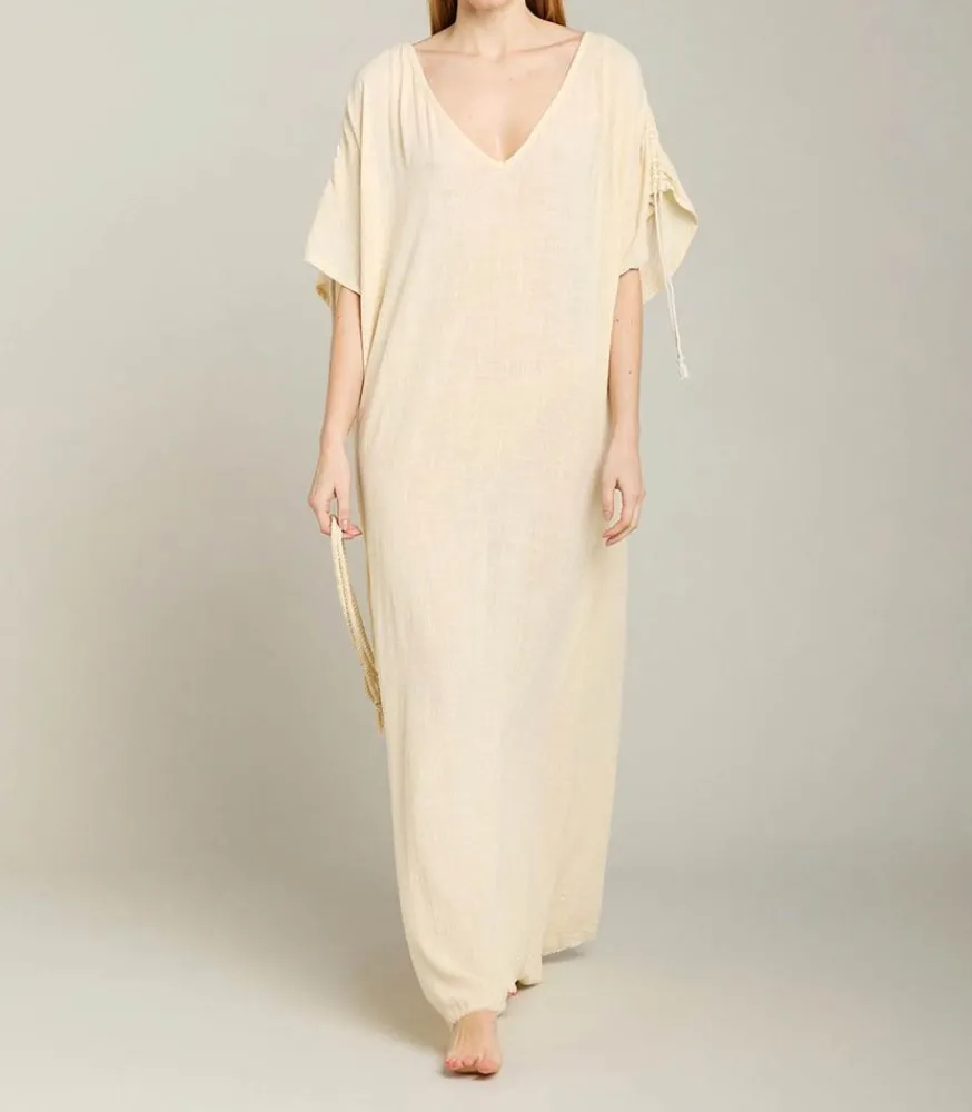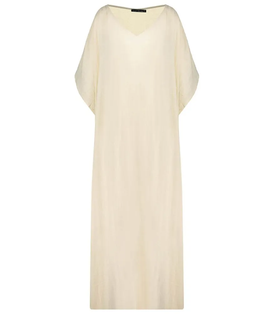 La Robe Longue Kaftan Cream De La Marque Maison Saint Julien Est Un Exemple Parfait D’Élégance Et De Confort Harmonieux. Elle Offre Une Sensation Agréable Sur La Peau. Son Col En V Ajoute Une Touche De Féminité, Tandis Que Les Manches Courtes Tombantes Offrent Une Silhouette Décontractée Et Élégante. La Lanière D’Ajustement Permet De Personnaliser Le Tombé Des Manches Selon Vos Préférences. De Plus, La Taille Est Ajustable Grâce À Une Ceinture Amovible Large, De Couleur Cream, Offrant Un Ajustement Parfait Pour Chaque Morphologie. La Robe Kaftan Cream Est Un Choix Idéal Pour Toutes Les Occasions, Alliant Style Et Confort Avec Aisance.