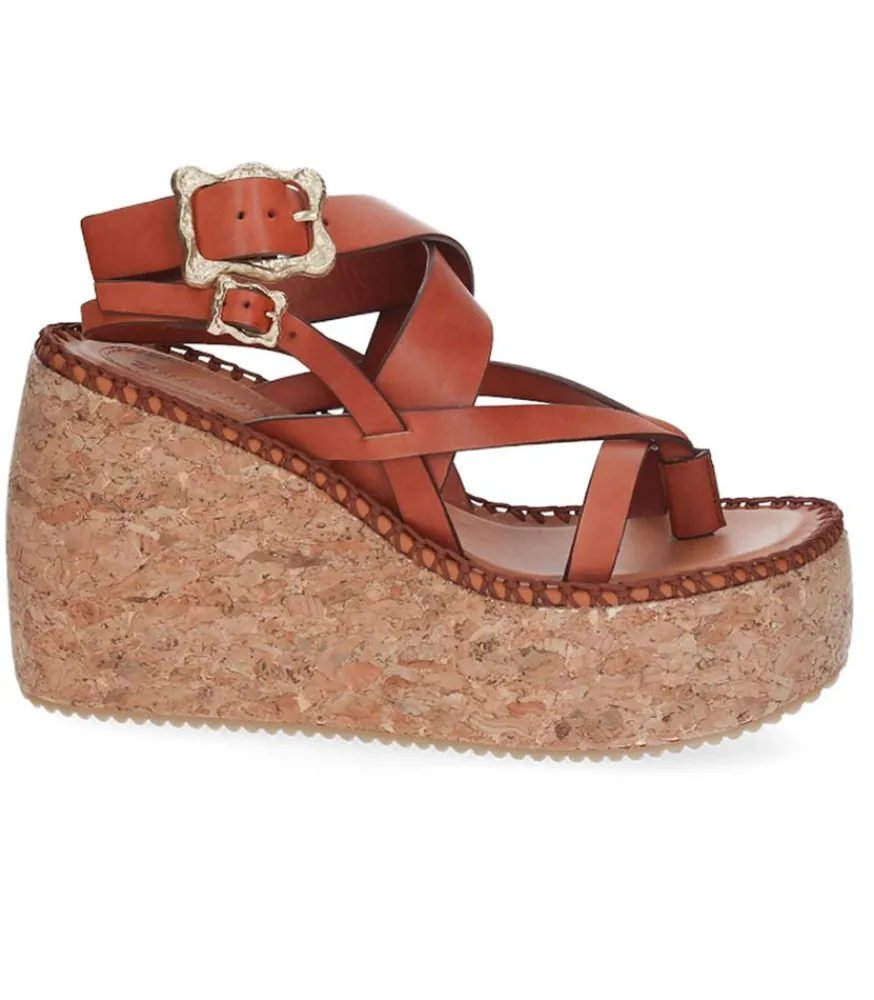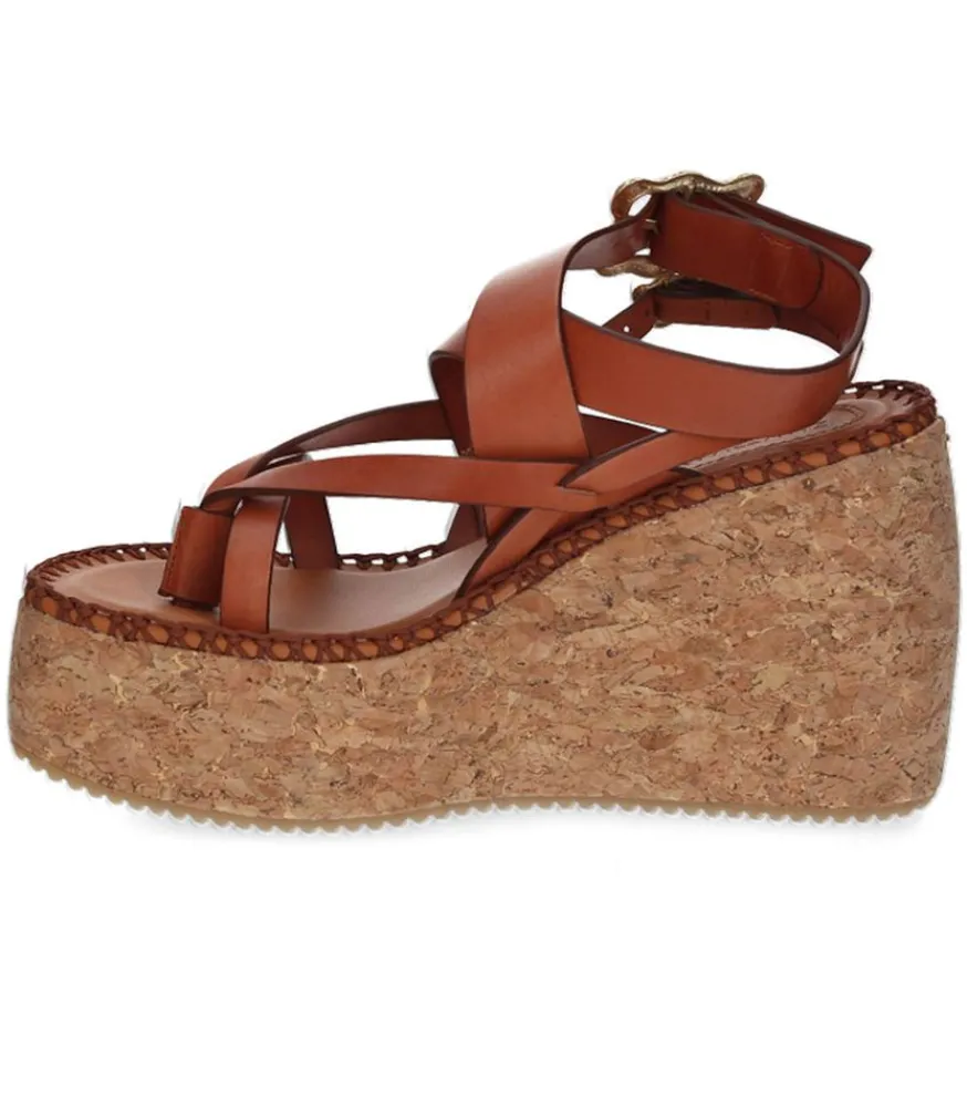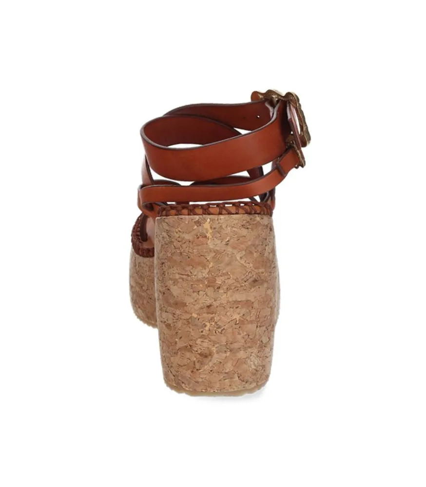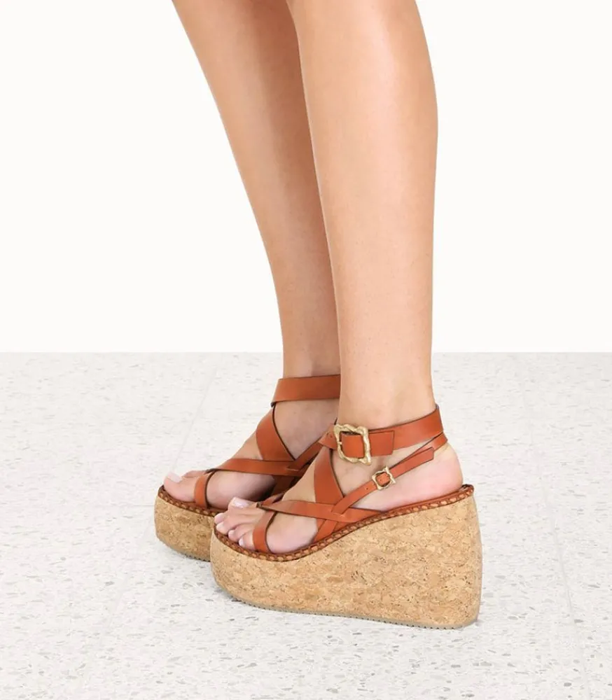 Sandales Compensées À Brides Multiples Signées Zimmermann. Une Paire De Sandales Compensées Multi-Sangles En Cognac. Un Modèle À Talon Compensé Avec Des Détails Contrastés.
