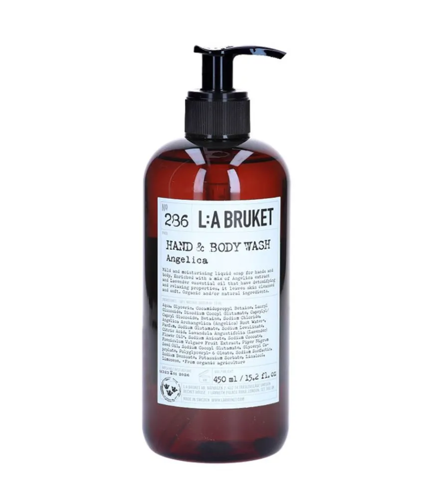 Savon Liquide Mains Et Corps N°286 Angélique Et Lavande En Format 450 Ml De La Marque L:A Bruket, Conçu Pour Nettoyer En Profondeur Les Mains Et Le Corps Grâce À Sa Formule À Base D’Ingrédients Naturels Et Biologiques. Présenté Dans Un Flacon Grand Format De 450 Ml Avec Sa Pompe, Il Est Pratique À Utiliser Au Quotidien.