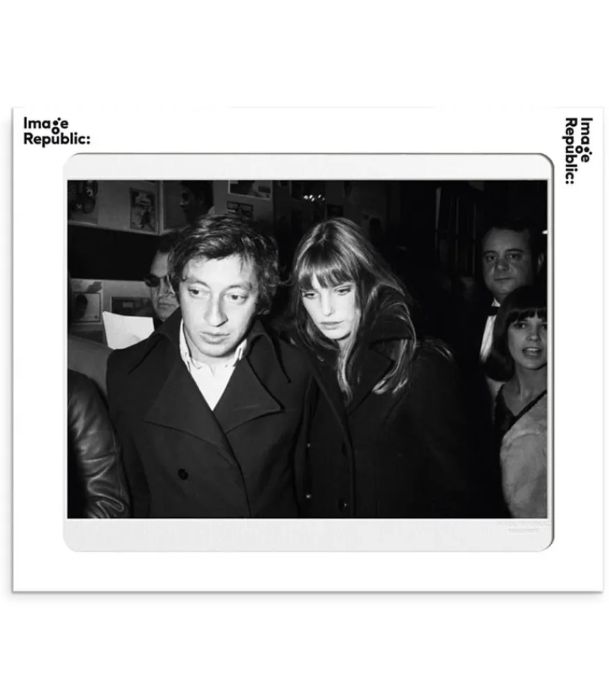 Affiche La Galerie Gainsbourg Birkin Cinéma Éditée Par Image Republic, Élégant Tirage En Noir Et Blanc Dévoilant Une Photographie Prise À La Manière Des Paparazzis, Sur Laquelle Serge Gainsbourg Et Jane Birkin Se Rendent Au Cinéma.