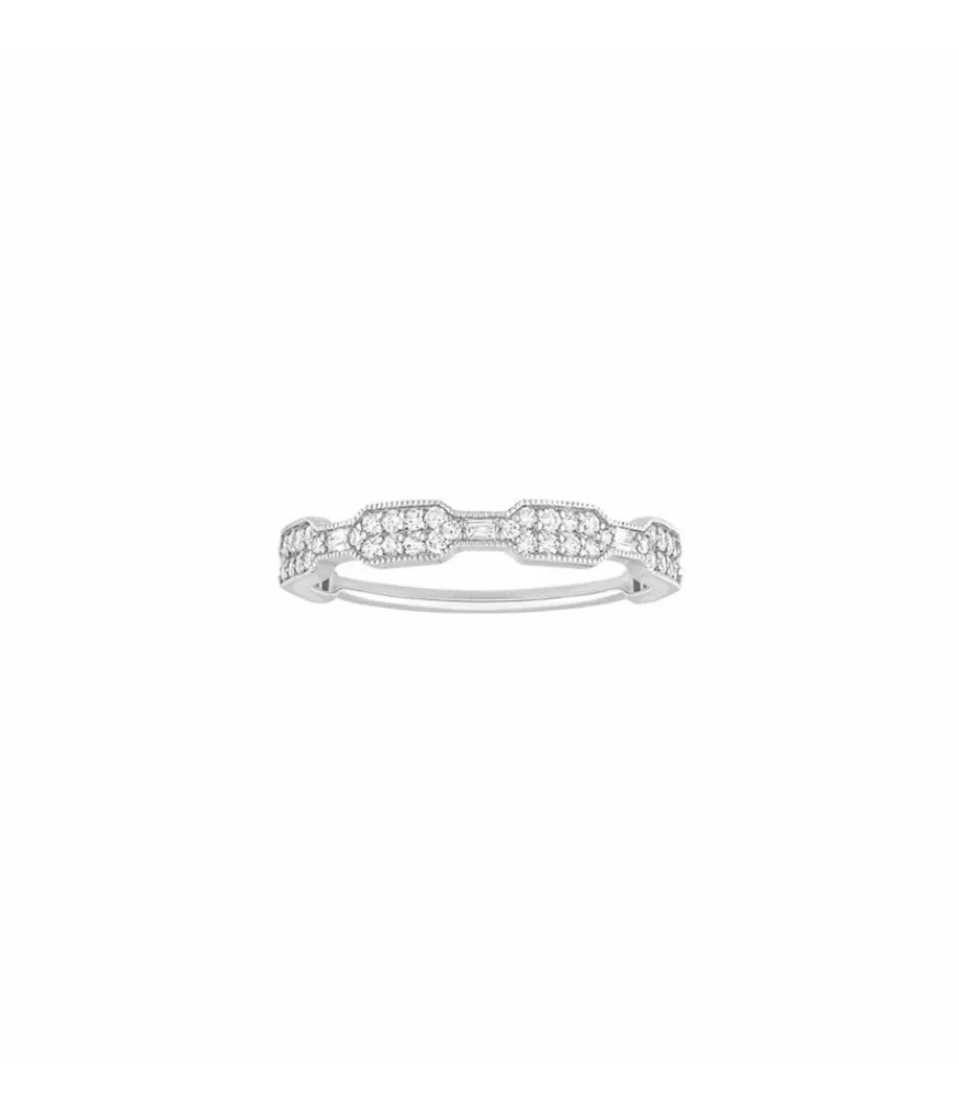 Bague Métropolis Petit Modèle Or Blanc Et Diamants Par Stone Paris, Une Alliance Aux Motifs Géométriques Agrémentés De Diamants Taille Baguette. Véritable Hommage Aux Années 30, Ce Bijou Se Porte Seul Ou Accompagné D’Autres Modèles.