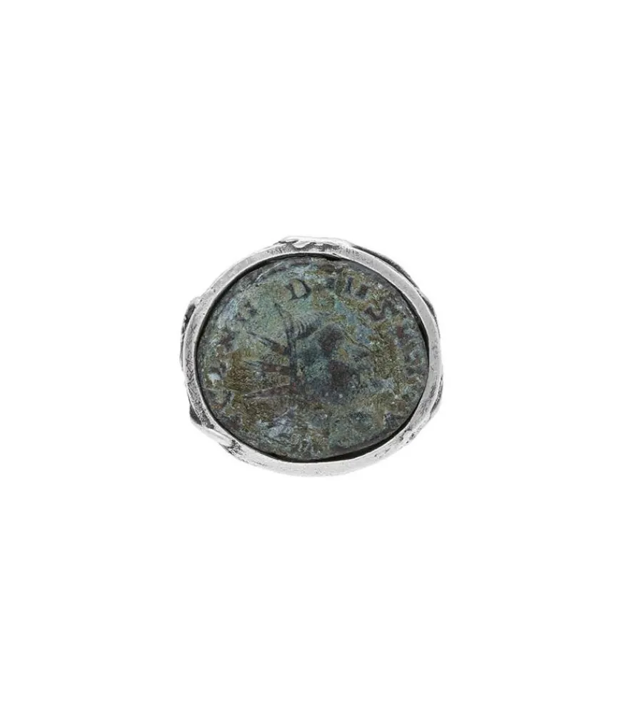Bague Pièce Antique En Argent 925 Signée Roc Paris, Faite À La Main Et Présentant Une Forme Irrégulière Qui Atteste De Sa Fabrication Artisanale. Cette Bague Est Une Pièce Unique Réalisée Avec Une Pièce Antique Romaine, Qui Date De L’An 200-300 Environ.