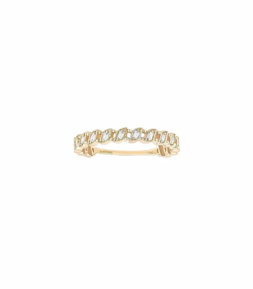 Bague Roméo Et Juliette Or Jaune Et Diamants De La Maison Stone Paris, En Or Jaune 750/1000 Lumineux. Le Design Très Féminin Comprend Un Anneau Dont L’Avant Est Agrémenté De Petits Motifs Feuilles Sertis De Diamants Baguettes Blancs. On-Ne-Peut-Plus Raffiné.