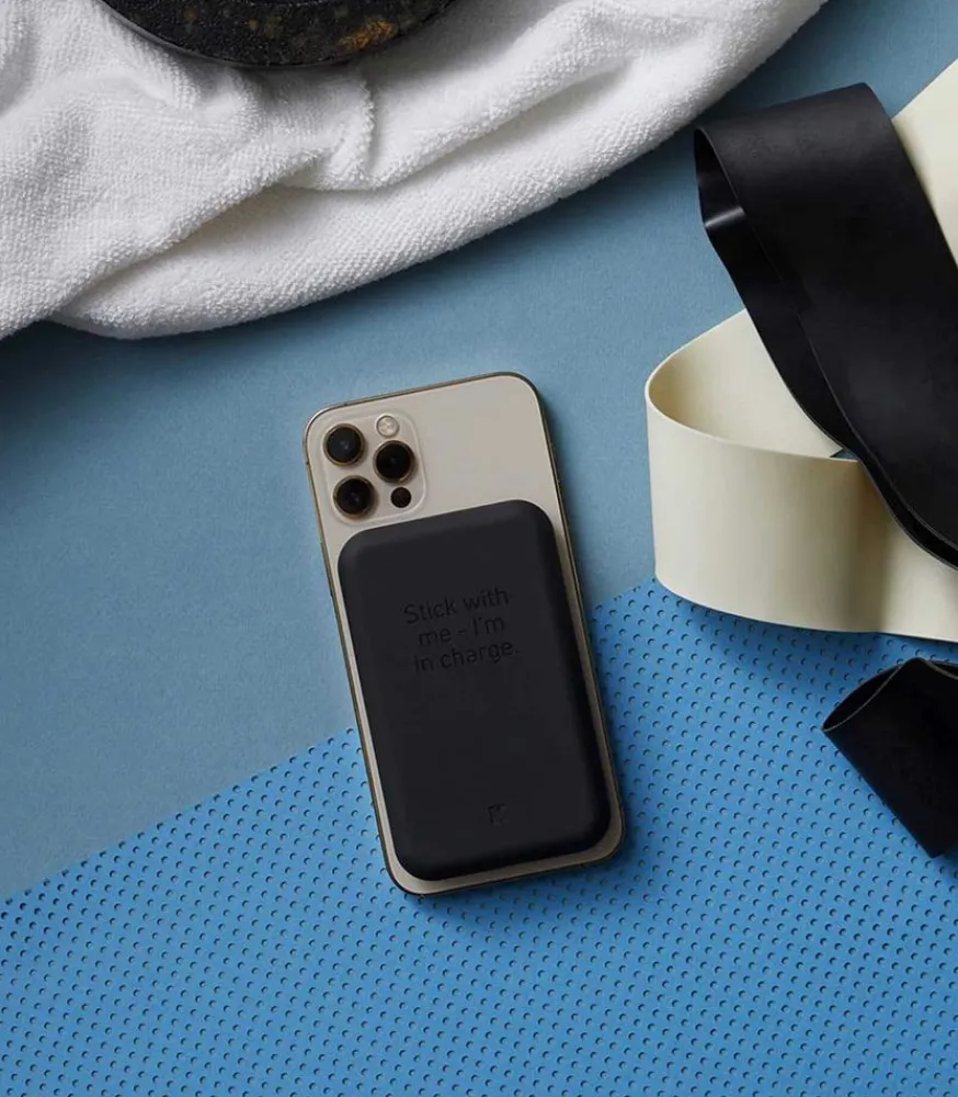 Batterie Portable Tocharge Qi De La Marque Kreafunk, Coloris Noir. Idéale À Emporter Partout, Elle Se Glisse Facilement Dans Un Sac Ou Une Poche.