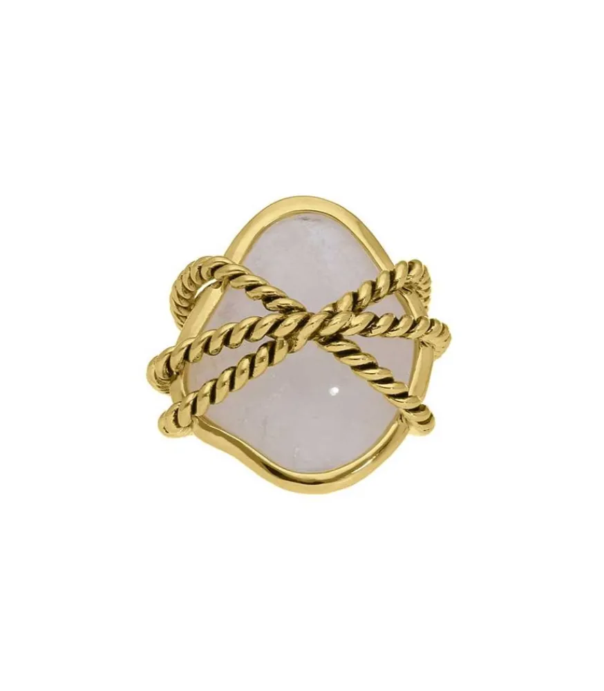 Bague Mycene Aurélie Bidermann Se Compose D’Une Pierre Xxl, Maintenue Par Trois Cordons Tressés Dorés.