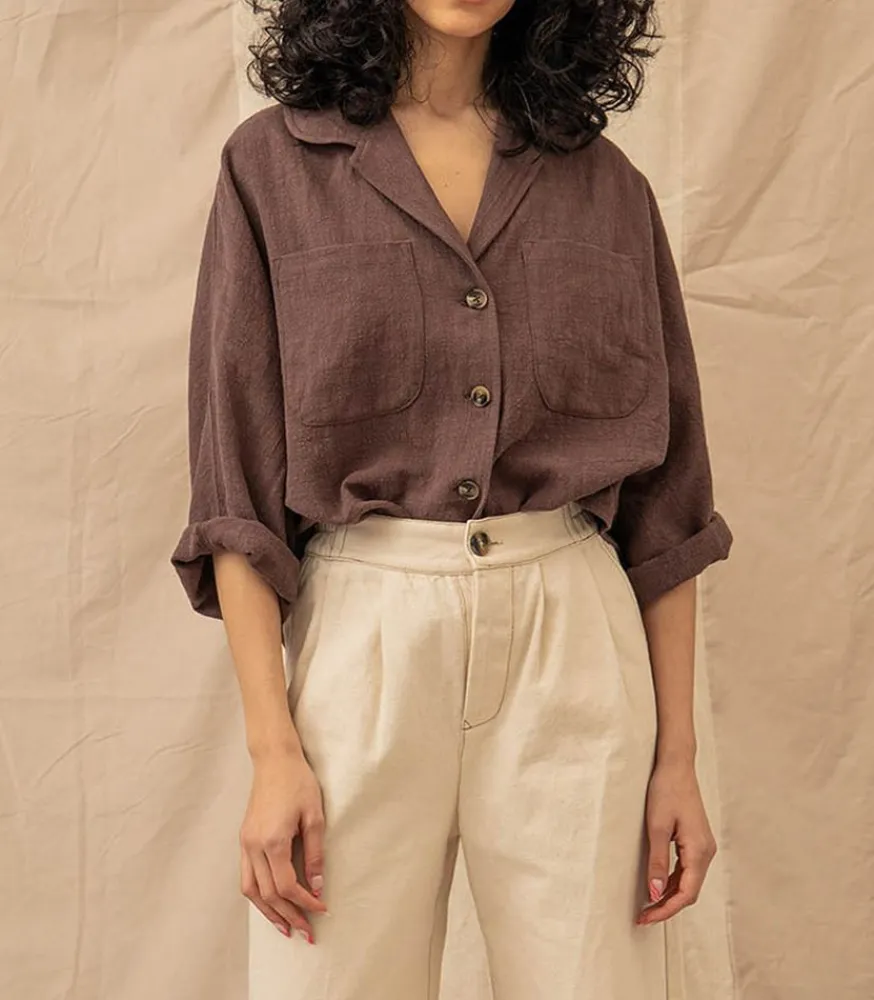 La Chemise Romy Chocolat De La Maque La Treille Maison Ensoleillée Est La Pièce Idéale Pour Le Retour Des Beaux Jours, Véritable Intemporel À Porter En Toutes Occassions.
