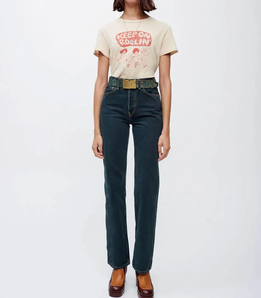 Un Air 90S Souffle Chez Re/Done Avec Le Jean 90S High Rise Loose Evergreen Dipped, Une Réinterprétation Des Emblématiques Denim Des Années 90. Teinte Singulière Et Toile Rigide Contrastés Par Des Surpiqûres En Font Un Allié Au Quotidien.