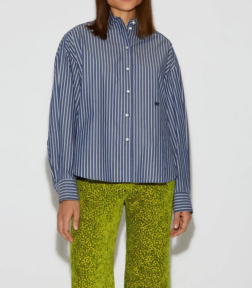 La Chemise Bijou De Roseanna, Du Thème Libertines, S’Inspire Du Style Rock Du Groupe Éponyme De Pete Doherty. Confectionnée En Popeline 100% Coton À Rayures, Dans Un Coloris Marine, Elle Allie Confort Et Élégance. Dotée D’Une Coupe Ample, De Manches Longues Et D’Un Col Chemise, Elle Est Ornée D’Un Patch Brodé Du Logo Double R Sur Le Devant, Ajoutant Une Touche Distinctive À Ce Modèle Classique.