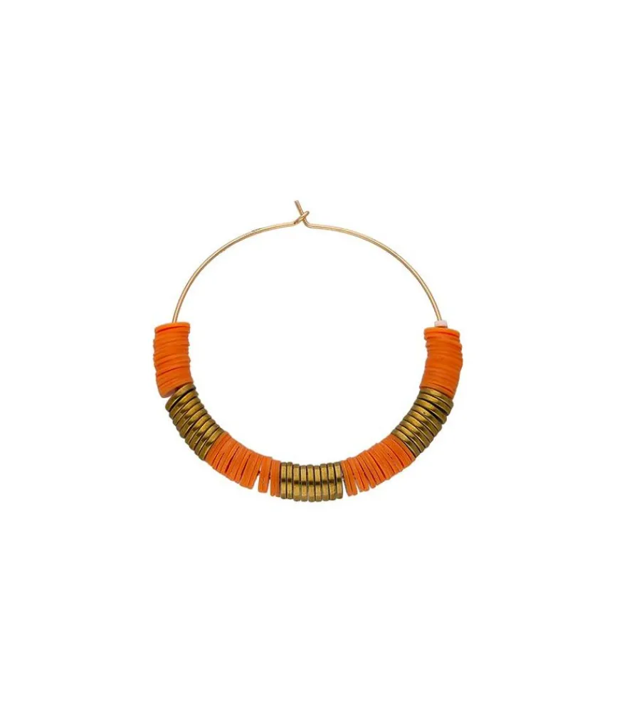 Pétillante Et Tendance, La Créole Nico Clémentine 6Mm De Maison Mönik Associe Des Perles En Vinyle Recyclé, Fabriquées À La Main Au Ghana, Et Des Rondelles En Laiton Brut. Ces Perles Plates De Diamètre 6Mm Sont Montées Sur Un Fil Plaqué Or, Minimaliste Et Moderne.