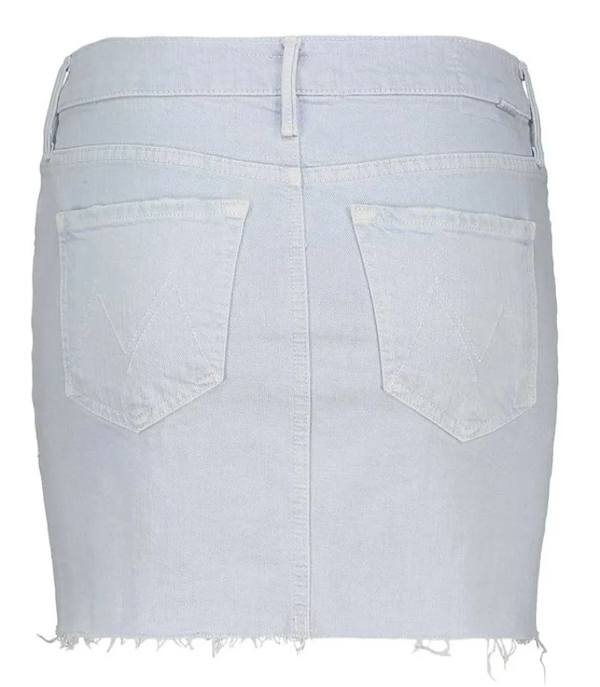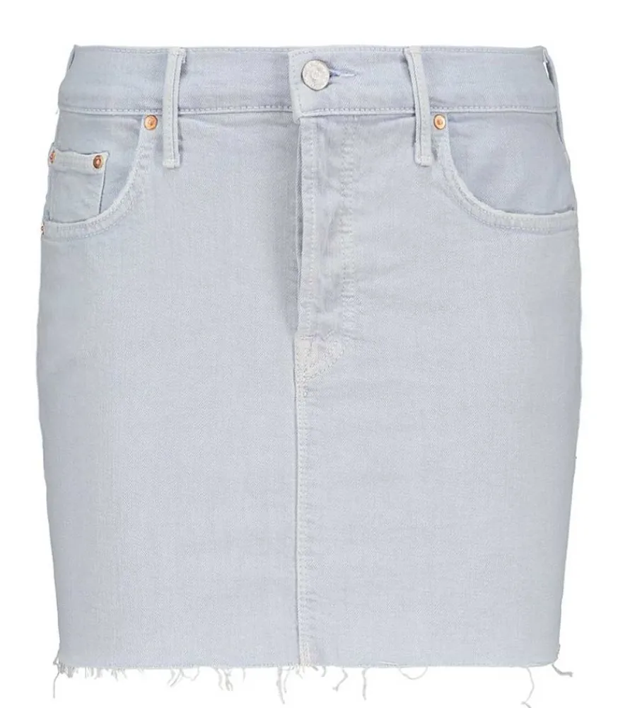 Mother Signe Un Must-Have Avec Cette Jupe The Vagabond Mini Fray. Ce Modèle En Denim De Haute Qualité Tombe Dans Une Coupe Ajustée À 5 Poches Et Au Bas Souligné Par Des Bords Francs.