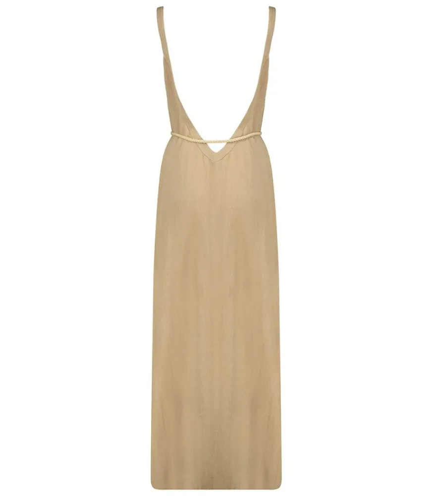 Robe Longue Palma De Mallorca Café Latte De La Marque Maison Saint Julien. Cette Robe Longue Incarne L’Élégance Décontractée Avec Ses Bretelles Épaisses Et Sa Couleur Café Latte. Son Dos Nu Plongeant Ajoute Une Touche Sensuelle Et Sophistiquée, Tandis Que Le Cordon De Serrage Indépendant Permet D’Ajuster La Silhouette. Parfaite Pour Les Journées Ensoleillées Ou Les Soirées Estivales.