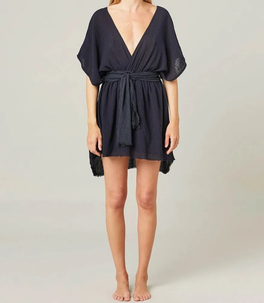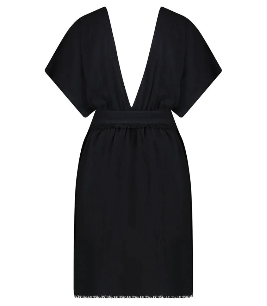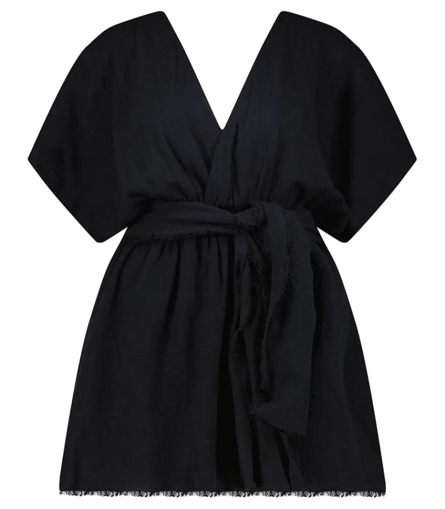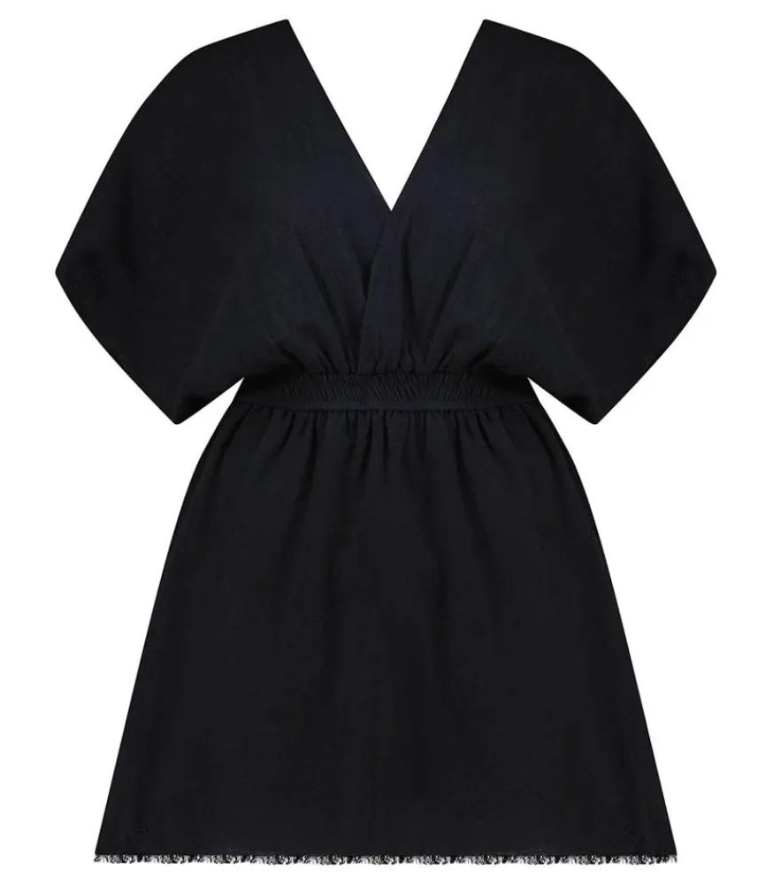 Robe Courte Empire Black De La Maison Saint Julien, Entièrement Conçu En Coton Froissé Léger Et Aérien. Cette Robe À La Coupe Babydoll Met En Valeur La Silhouette Et La Poitrine Pour Une Allure Féminine. Cette Pièce Est Fabriquée À La Main À Bali, Par Un Atelier Local Et Familial, Dans Le Respect Du Savoir-Faire Traditionnel. Une Pièce Parfaite Pour Enfiler Par-Dessus Son Maillot Après La Plage.