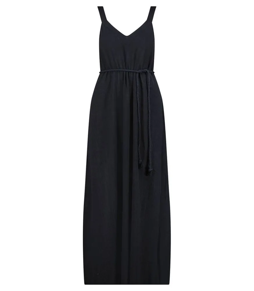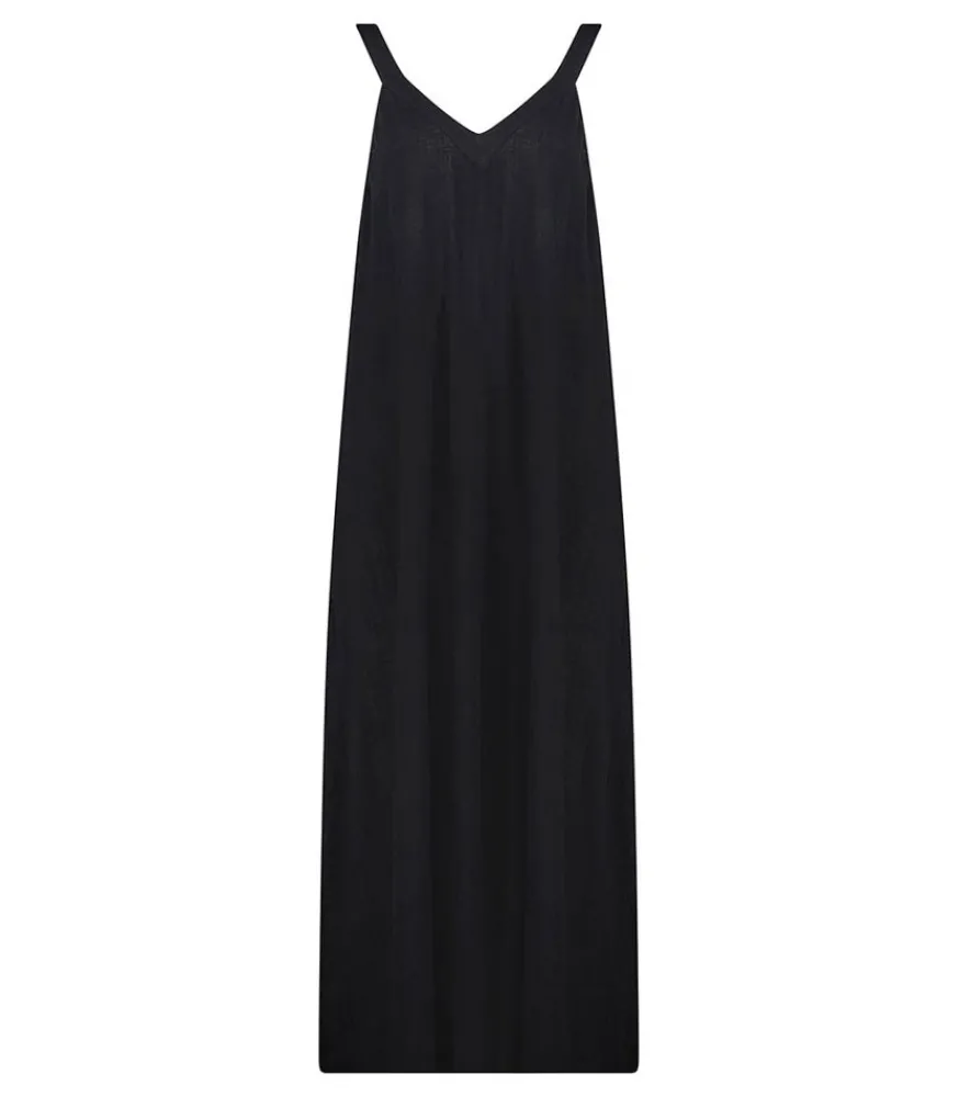 Robe Longue Palma De Mallorca Black De La Marque Maison Saint Julien, Un Modèle Conçu En Mousseline De Coton À La Fois Doux Et Texturé. Dans Un Esprit Bohème, On Associe Ce Modèle Aérien À Une Paire De Sandales.