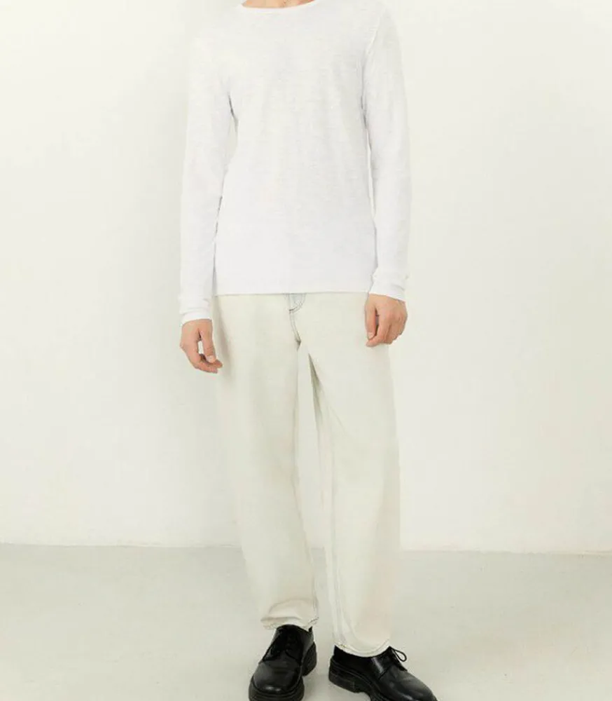 Tee-Shirt À Manches Longues Homme Bysapick Blanc De La Marque American Vintage, Idéal Comme Pièce Essentielle Du Vestiaire.