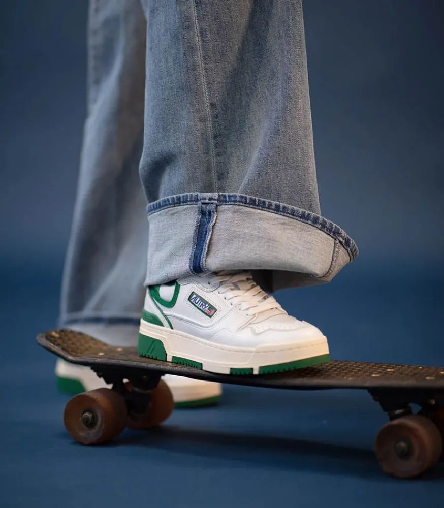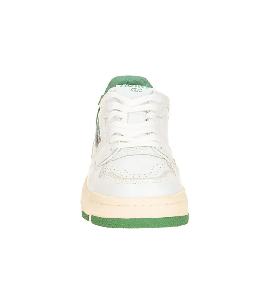 Baskets Clc Blanc Et Vert Signées Autry. Une Basket Basse Aux Détails Contemporains, Inspirée Par L’Esthétique Des Anciennes Baskets De Basketball. Design Élégant Avec Un Côté À La Fois Urbain Et Sportif.