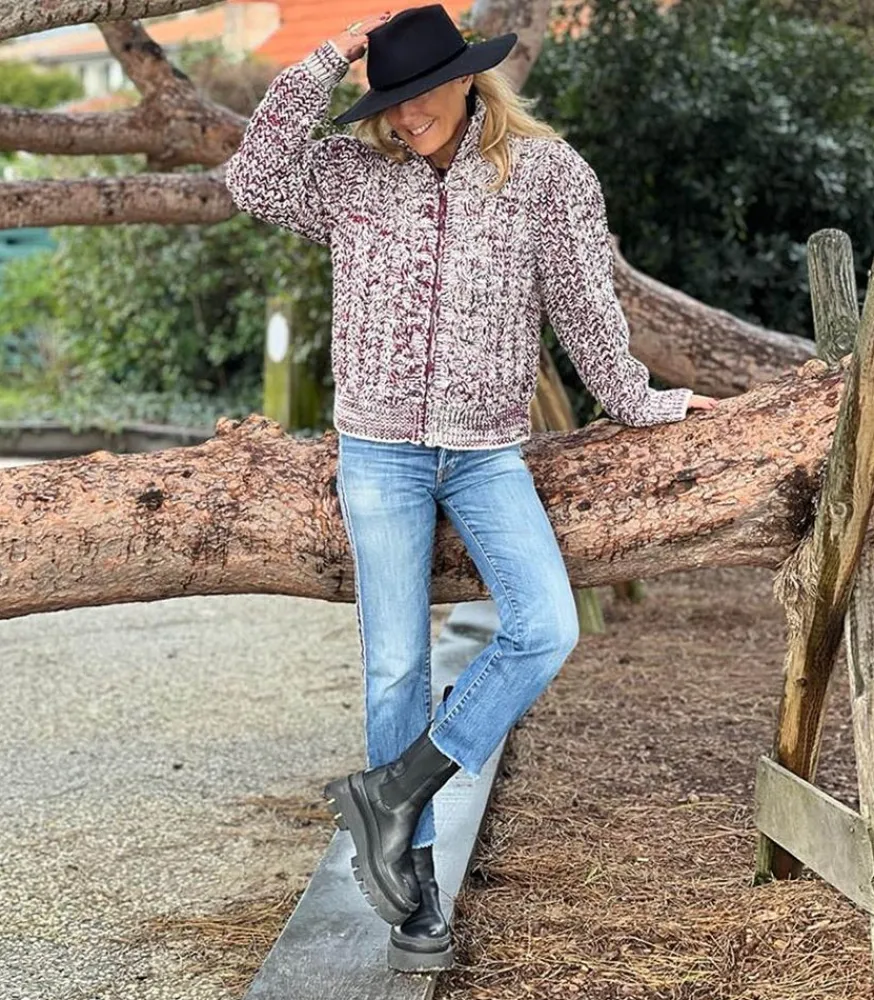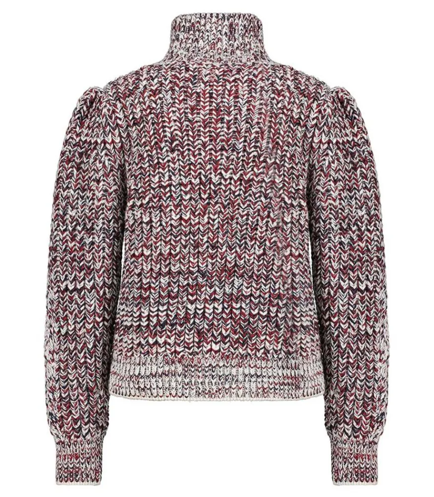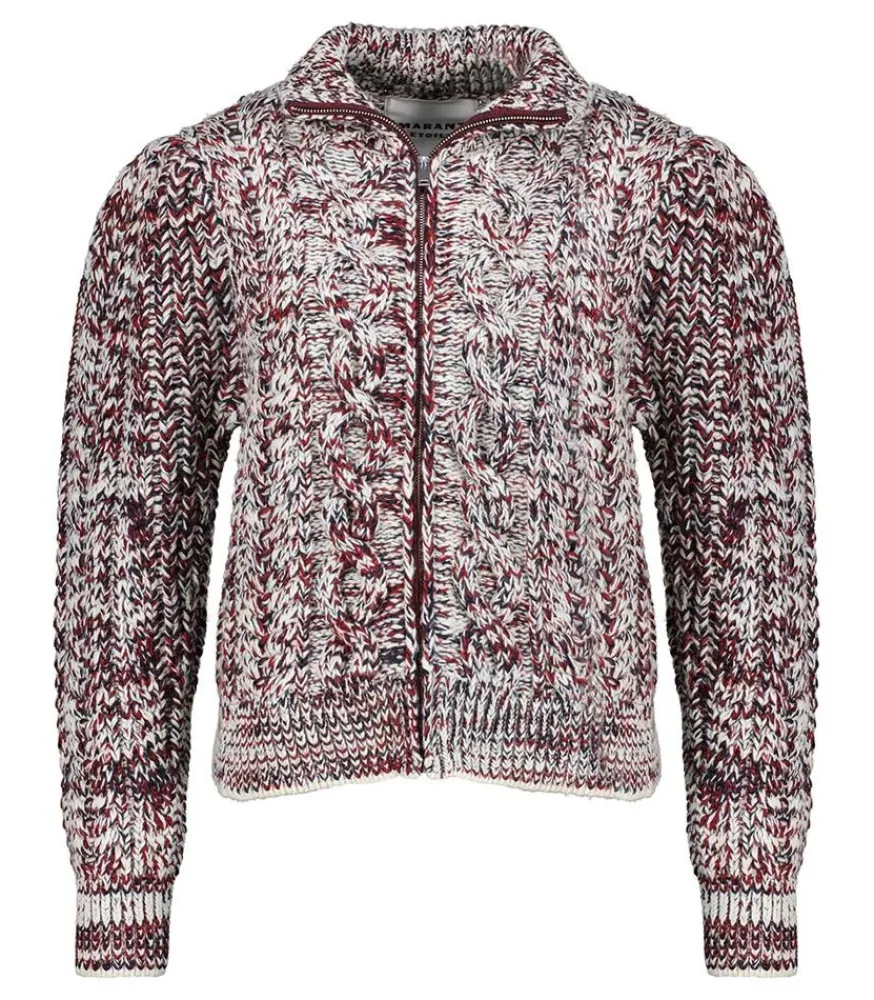 Cardigan Romane Burgundy De La Marque Marant Étoile. Idéal Pour La Saison Hivernale. On L’Imagine Avec Une Tenue Simple : Jean Coupe Droit Et Haut Blanc.