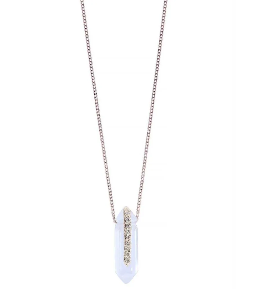 Ce Collier Moon N°1 Incarne Toutes Les Inspirations Venues Du Voyage Et De La Culture Underground Qui Composent Le Style Unique De Pascale Monvoisin. Dans Un Esprit New Age Revisité, Son Pendentif En Cristal Est Serti D’Une Barrette De Diamants. La Chaîne En Or Rose De 40Cm Ajoute Une Note Douce Et Tendre.