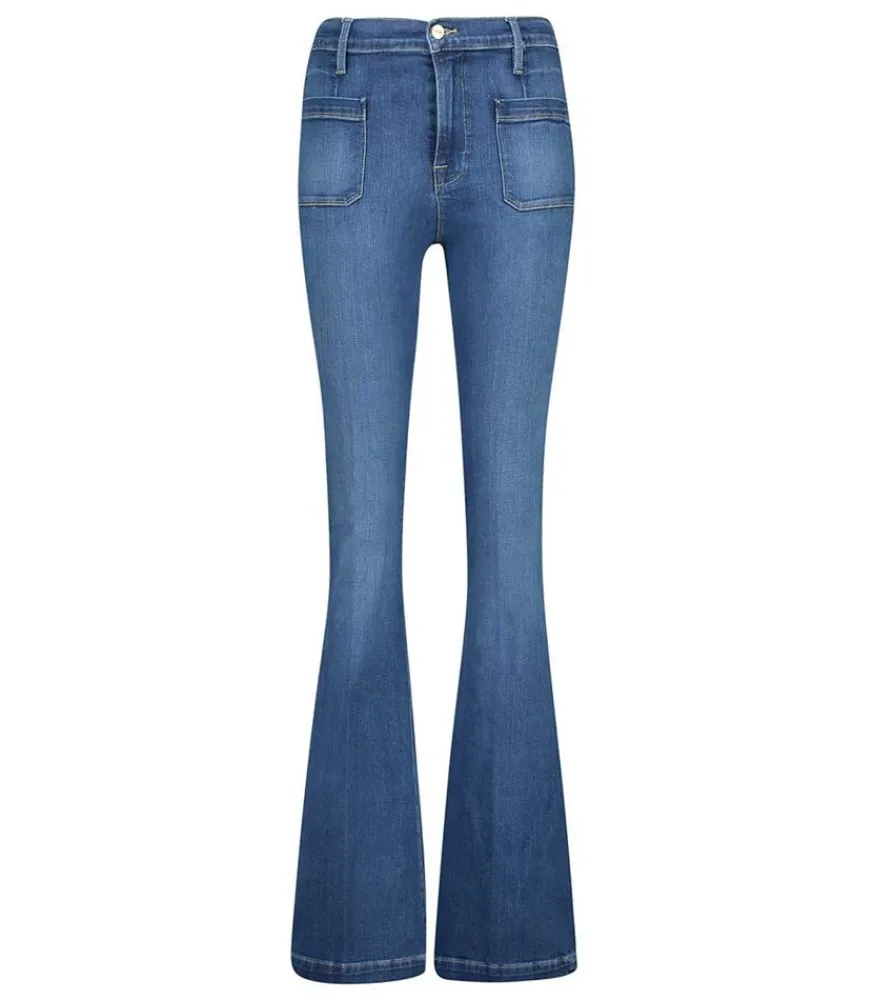 Pièce Phare Du Vestaire Rétro, Le Jean Le Bardot Signé Frame Denim Sublime La Silhouette Avec Sa Coupe Flare D’Inspriation 70’S.