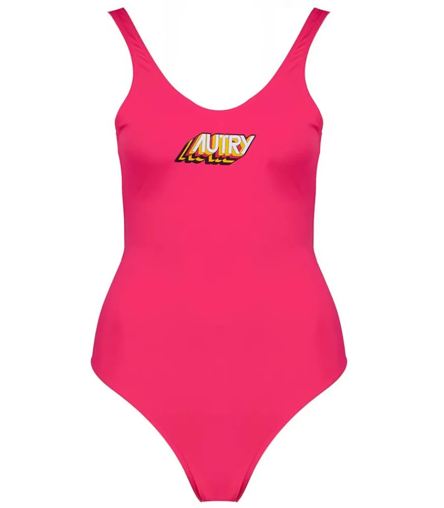 Maillot De Bain Une Pièce Aerobic Tinto Tuchsia De La Marque Autry. Un Modèle Classique Et Minimaliste Décliné Dans Une Version Rose Pétillante Qui Se Distingue Par Le Logo « Autry » Interprété Dans Une Version Rétro Au Centre De La Poitrine. Bretelles Fines Et Dos Nu.