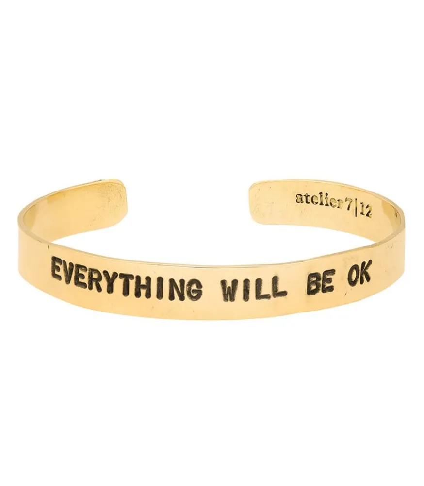 Atelier 7|12, Maison Italienne De Bijoux Artisanaux, Nous Rassure Avec Ce Joli Bracelet En Laiton Doré Gravé Du Message « Everything Will Be Ok ». Un Invitation À Lâcher Prise Et À Laisser Les Choses Se Produire Comme Elles Doivent L’Être. Lumineux Et Chic, Il Sera Parfait Avec Des Bracelets Plus Fins Ou Colorés.