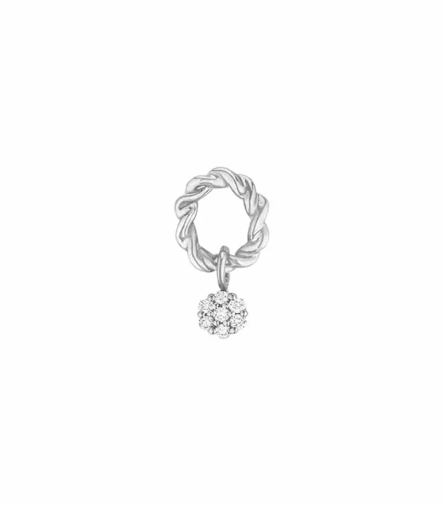 Boucle D’Oreille Puce Dunaway Or Blanc Et Diamants De La Marque Stone Paris, Une Jolie Petite Boucle Formant Un Anneau Torsadé Agrémenté D’Un Charme Boule Sertie De Diamants Blancs. Une Pièce Féminine Et Originale, Qui Reste Discrète Avant Tout.