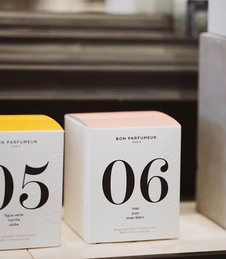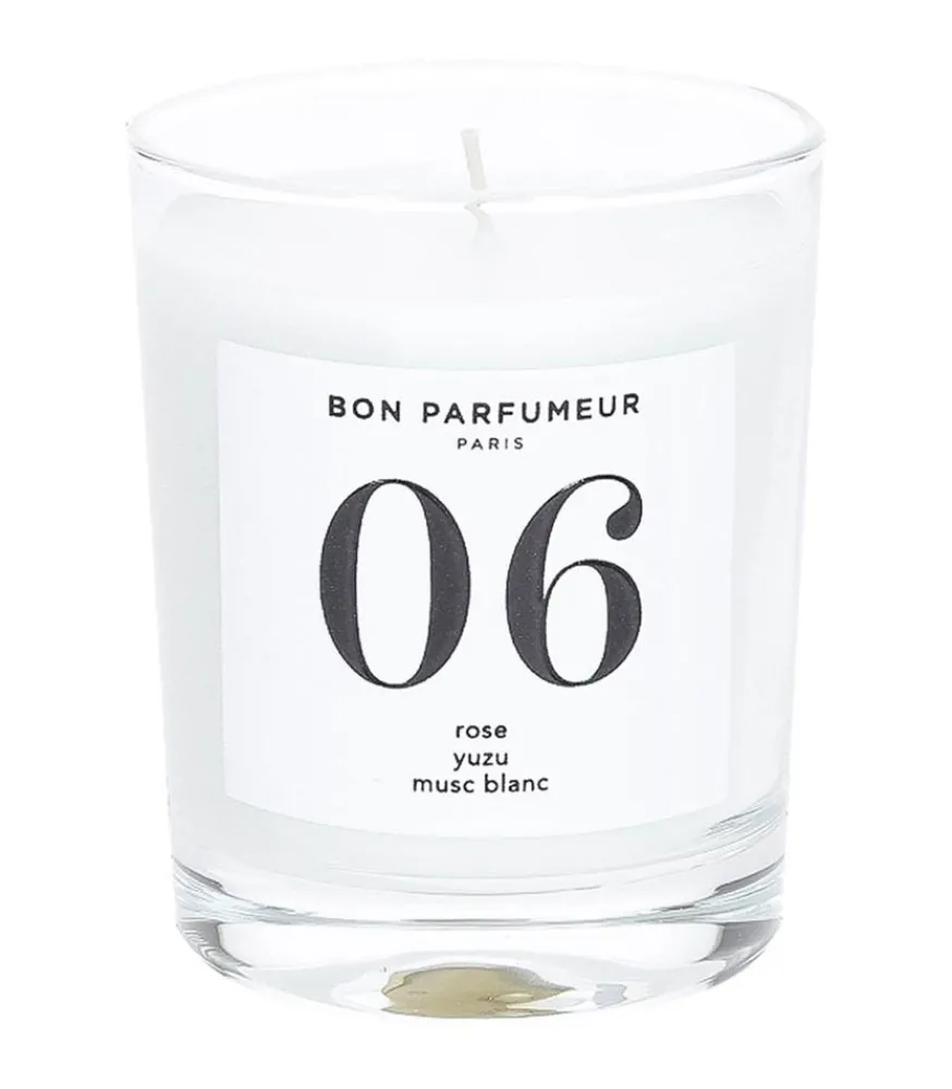 Bougie Parfumée 06 Rose, Yuzu Et Musc Blanc De La Marque Bon Parfumeur. La Senteur Dévoile Une Rose Fraîche, Verte Et Fusante, Comme Enrobée Par Des Notes D’Agrumes Et D’Épices. Un Zest De Citron Frais Réveille Le Tout Tandis Que Les Mucs Et Le Bois Blanc Enveloppent La Composition.