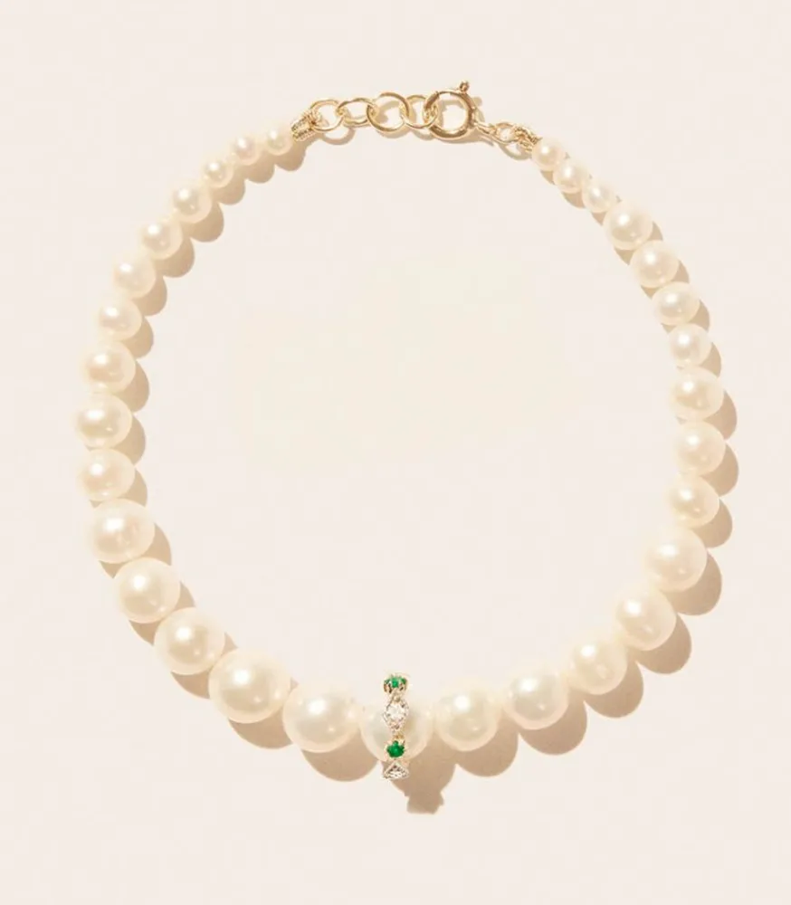 Bracelet Chelsea N°2 Signé Pascale Monvoisin. Véritable Accessoire De Mode, Ce Bijou Joue Le Contraste Entre Une Maille D’Or Jaune Xxl, Et Les Détails Fins D’Une Bague D’Émeraudes Sur Le Pourtour. Un Bijou Tout En Perles Vintage Qui Habillera Au Mieux Votre Tenue.
