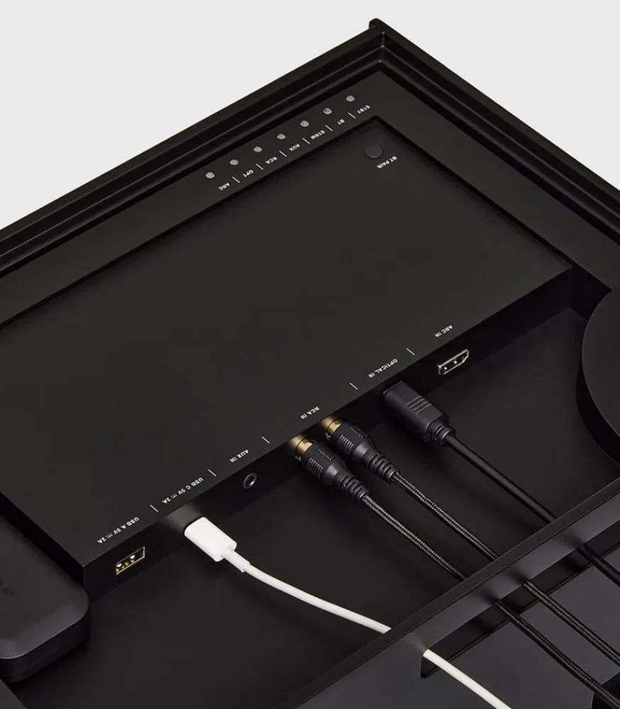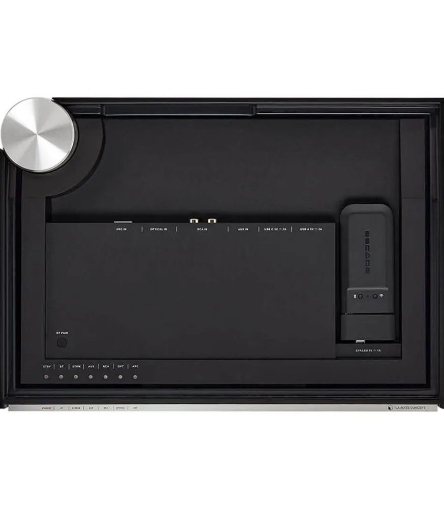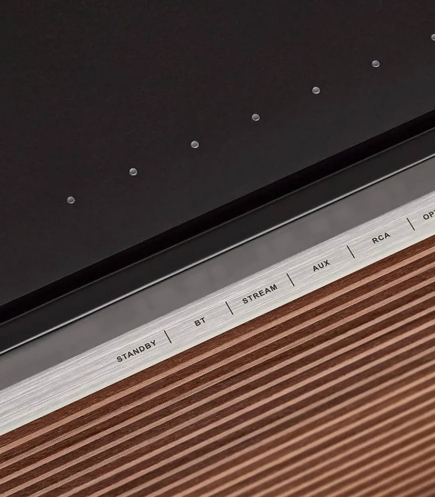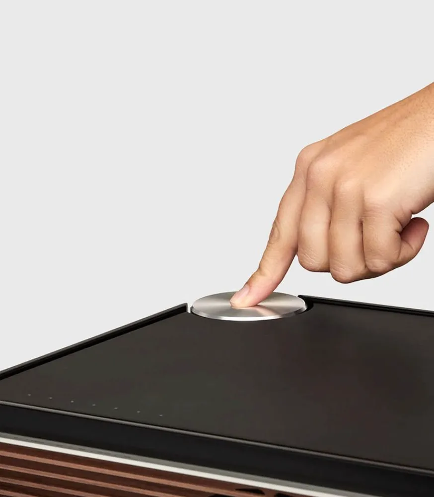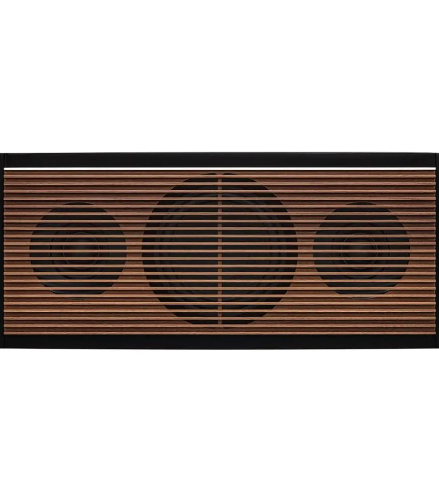 Composée En Matériaux Nobles Tels Que Le Bois De Noyer Massif Et La Bakélite, Cette Enceinte Est Un Véritable Objet De Design Contemporain Et Intemporel À La Fois. Un Unique Bouton En Aluminium Sur Le Dessus Permet De Gérer Toutes Les Commandes, Tout En Restant Discret En S’Intégrant Parfaitement Dans Le Design.