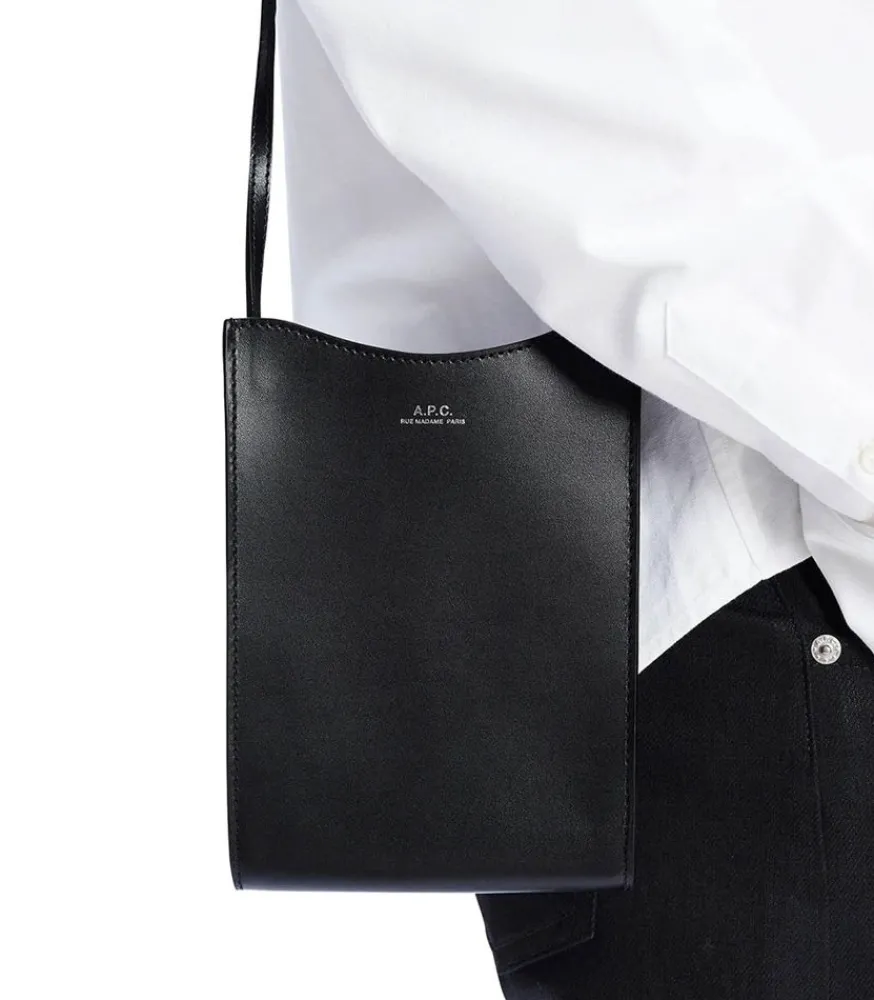 Pochette Neck Pouch Jamie Par A.P.C., Une Pochette Tour De Cou Confectionnée En Cuir De Vachette Lisse Noir. Unisexe, Ce Modèle Accueille Vos Essentiels Et Ajoute Une Touche Minimaliste Mais Sophistiquée À Votre Tenue.