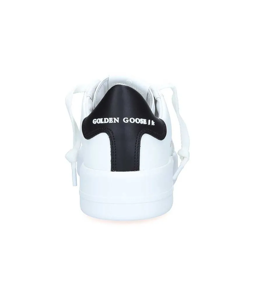 Baskets Purestar Cuir Blanc Noir Golden Goose, Une Basket Simple Pour Aborder Un Look Minimaliste, En Full Black & White. Leur Design Pur Et Minimaliste Les Rendent Hautement Désirables, Simplement Décorées D’Un Contrefort Noir Pour Une Touche Chic.