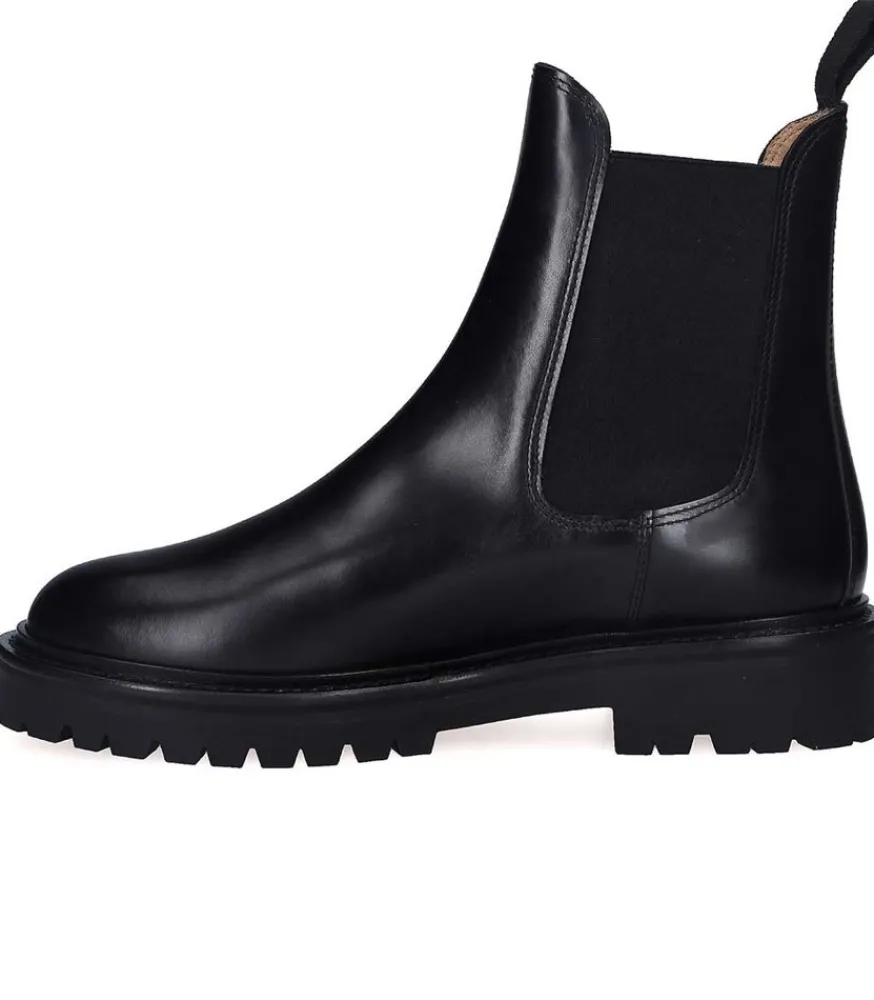 Bottines En Cuir Castayh Isabel Marant Pour Homme De Forme Chelsea Boots En Cuir Lisse Noir. Tige Élastique, Semelle Épasse Crantée Et Languette Au Dos.
