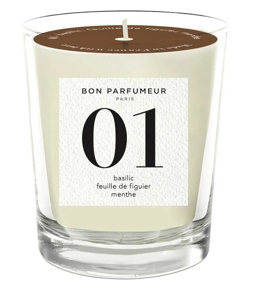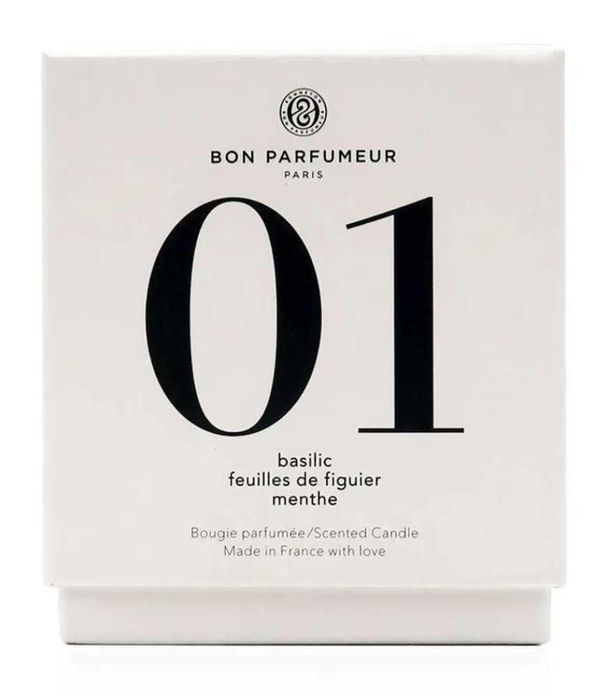 Bougie Parfumée 01 Basilic, Feuilles De Figuier Et Menthe De La Maison Bon Parfumeur. Un Parfum D’Intérieur Aux Douces Senteurs Conçues Autour Des Feuilles De Basilic, De Menthe Et De Figuier, Qui Dégagent Une Fraîcheur Verte Et Aromatique. On Retrouve Une Note De Tête Dictée Par La Douceur Et L’Amertume De L’Orange Du Brésil, Un Cœur Dynamisé Par De L’Eucalyptus Bleu Et Un Fond Rond Grâce Aux Extraits De Vanille.