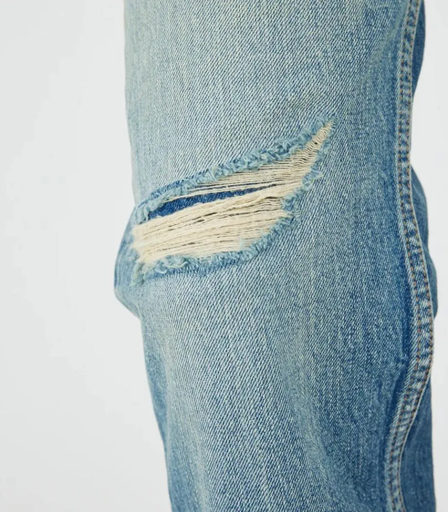 Craquez Pour Le Jean Mckellar Wide Straight Selvedge Blue De La Marque Moussy Vintage. Ce Jean À La Coupe Large Droite Et Aux Détails Destroy, Offre À La Fois Un Confort Décontracté Et Une Esthétique Moderne.