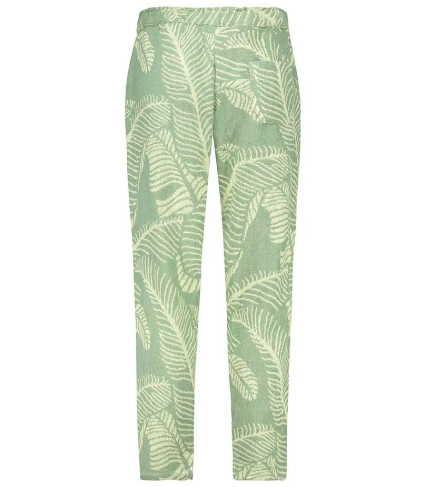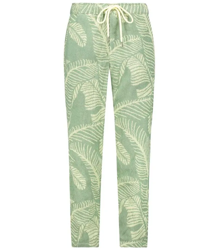 Pantalon Pour Homme Banana Leaf De La Marque Oas, Entièrement En Matière Éponge D’Impression Feuilles De Bananier. Taille Élastiquée Et Cordons De Serrage. Poches Latérales Et Une Poche Au Dos.