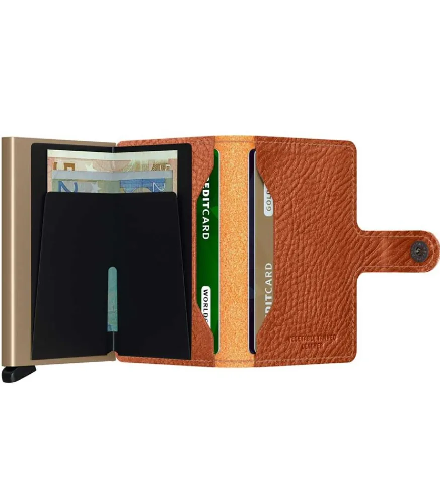 Porte-Carte Secrid, Modèle Miniwallet Veg Caramello – Sand Conçu Dans Un Cuir Caramel À Tannage Végétal Pour Une Réalisation Respectueuse De L’Environnement. Un Objet Élégant, Astucieux Et Ingénieux Avec Son Format Compact À Ouverture À Bouton Pression, Qui Dévoile Différents Rangements Pour Cartes, Billets, Ainsi Qu’Un Porte-Cartes Intégré À Ouverture Pratique Qui Protège Vos Cartes Bancaires Contre La Fraude Et La Casse.