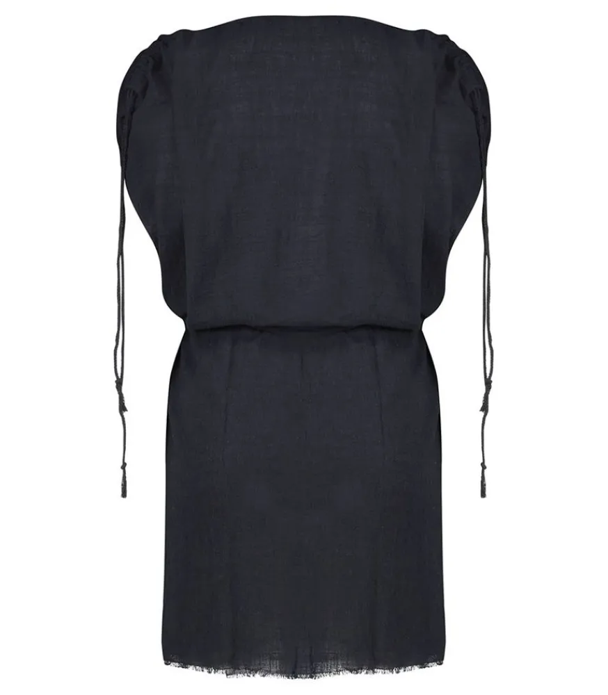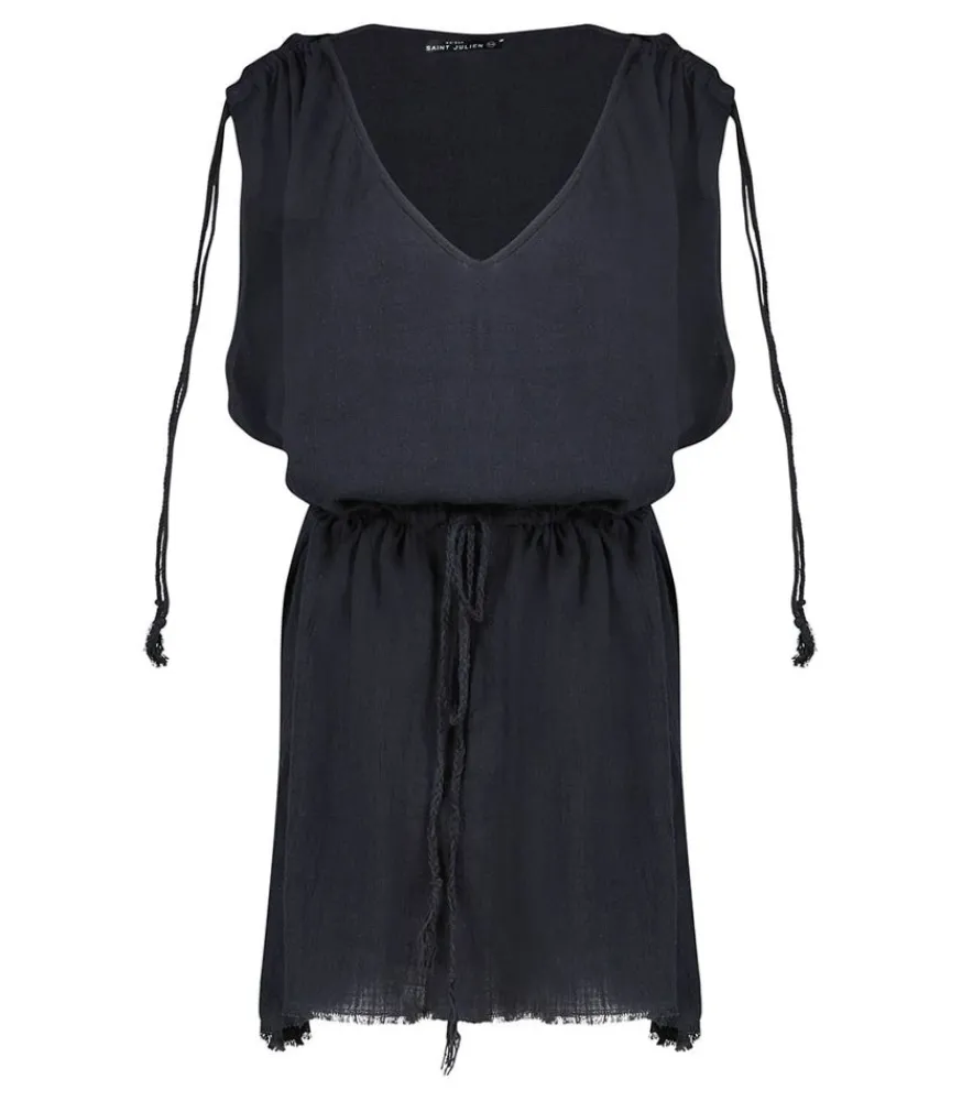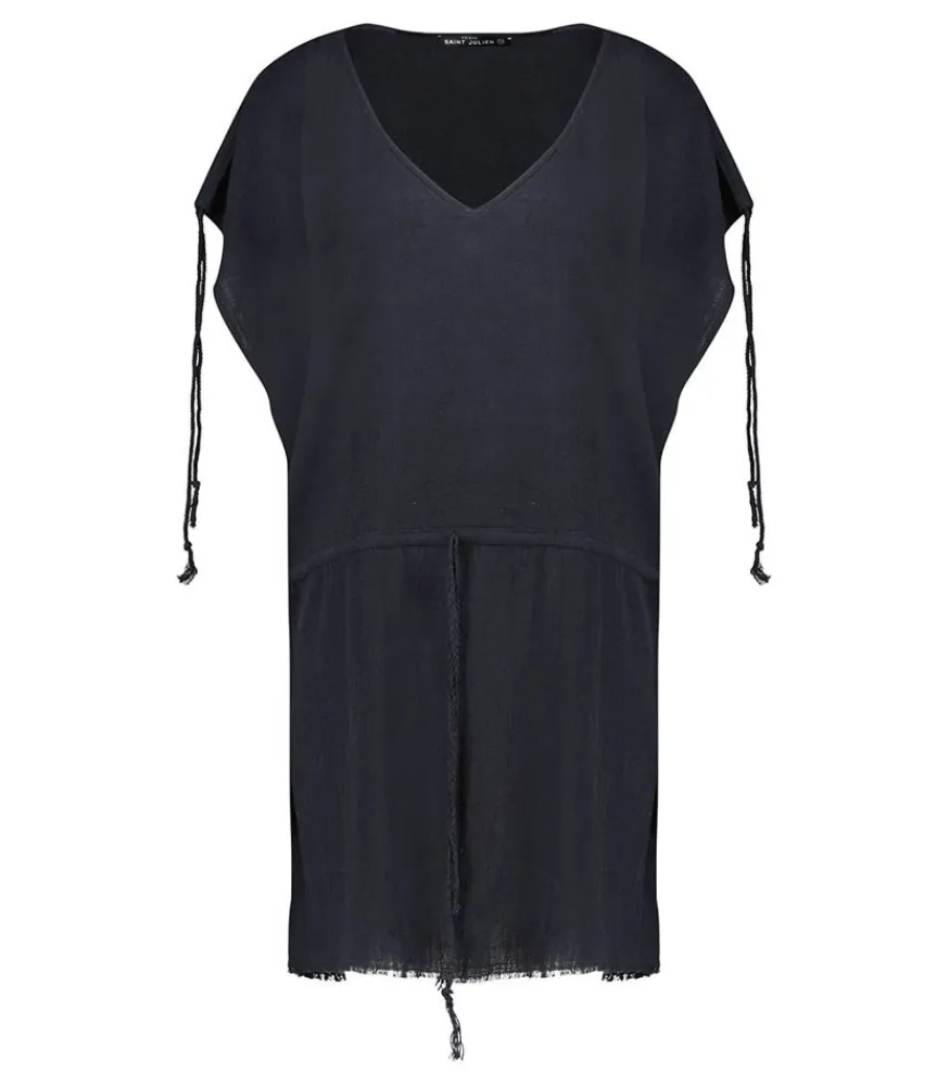 Robe Courte Alexandrie Noir De La Marque Maison Saint Julien, Une Robe Kaftan D’Été Légère Et Aérienne, Conçue En Mousseline De Coton Et Qui Offre Une Allure Bohème.